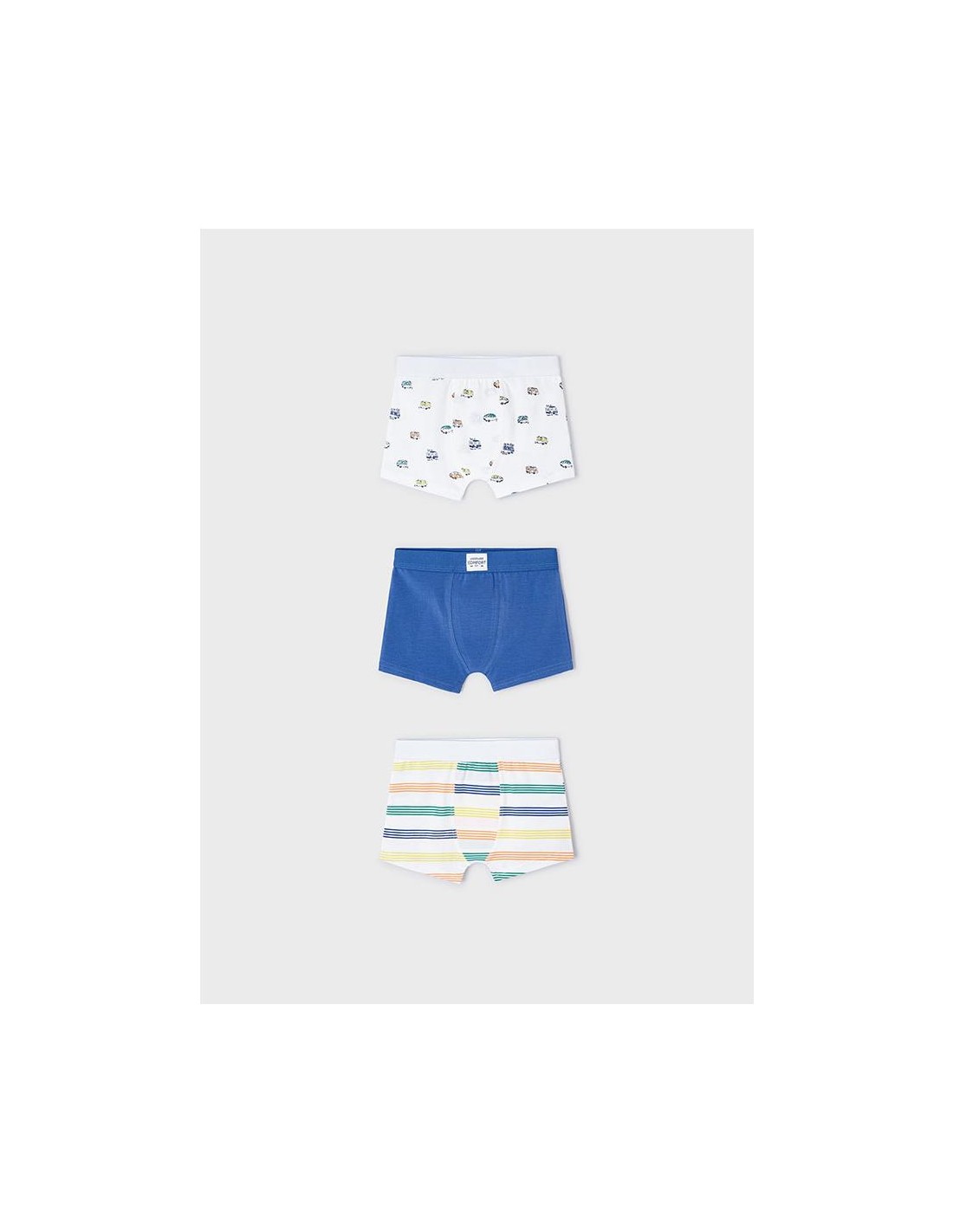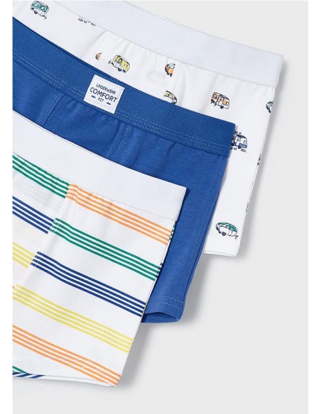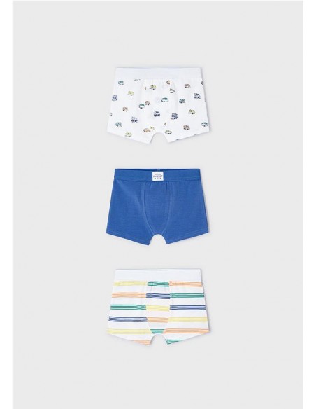 ACCESORIOS SET 3 BOXER MAYORAL MAYORAL 10694 19,99 € 2 10 14 16 AZUL BLANCO AZULON Añadir al carrito Set de 3 calzoncillos para niño de tipo bóxer. Añadir al carrito
