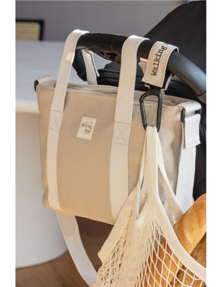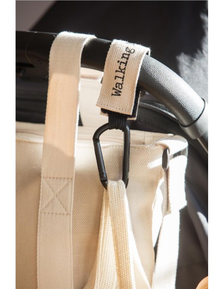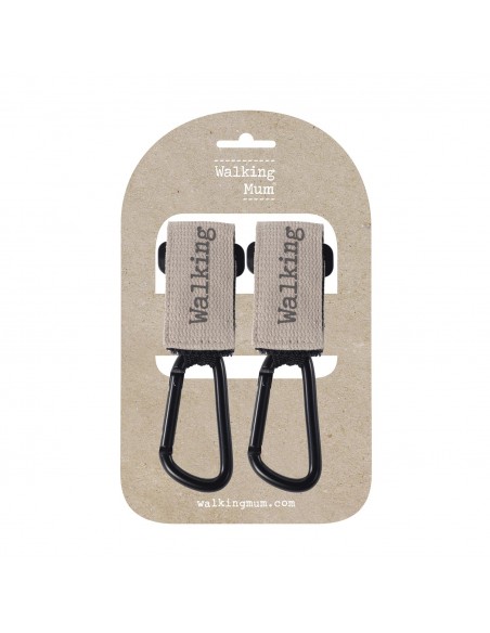 Set de 2 ganchos para cochecito Eco Mum Apricot. Gancho de metal. Muy facil de colocar gracias a sus tiras con velcro. Perfecto para colgar la bolsa de canastilla o cualquier bolsa que necesites llevar en el cochecito. Soporta hasta 5 kgs de peso. Universal.