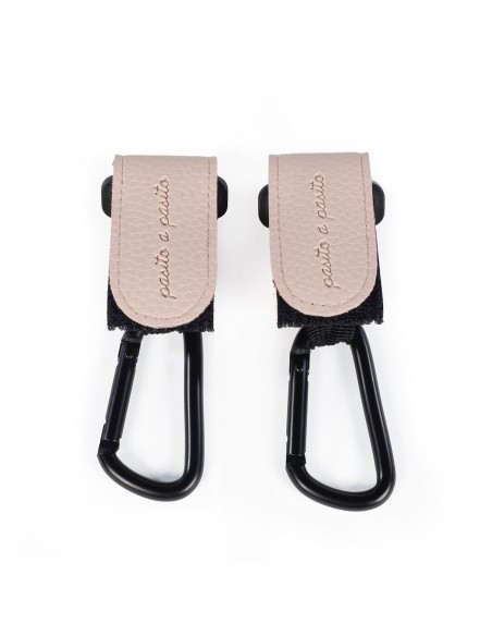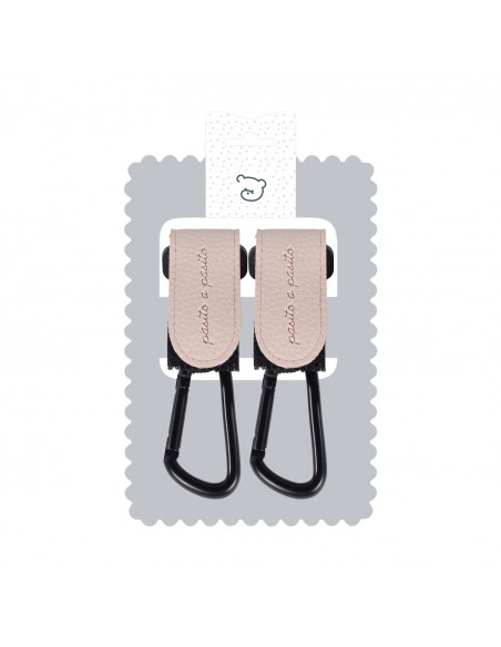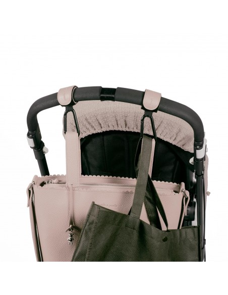 Set de 2 ganchos para cochecito Icon Rose en polipiel. Gancho de metal. Muy facil de colocar gracias a sus tiras con velcro. Perfecto para colgar la bolsa de canastilla o cualquier bolsa que necesites llevar en el cochecito. Soporta hasta 5 kgs de peso. Universal.