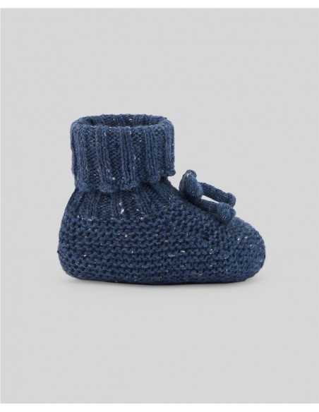 Patucos de punto de diseño clásico con lazada frontal que permite ajustarlos cómodamente al pie del bebé. El acabado vuelto en el tobillo proporciona mayor sujeción y calidez.