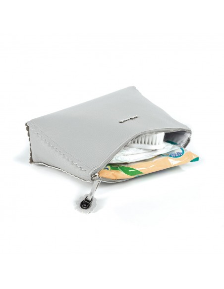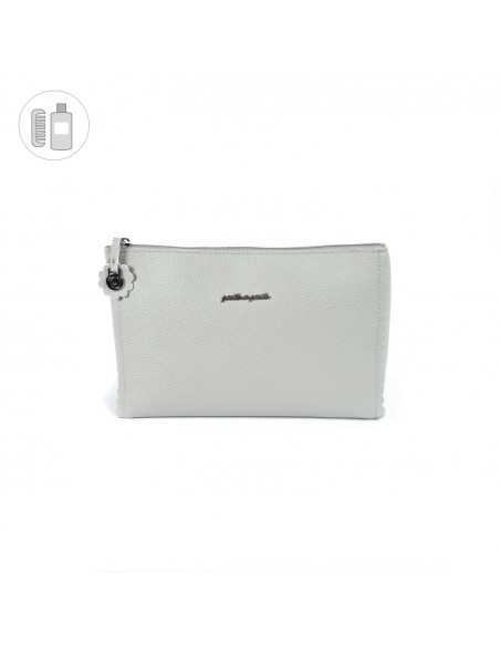 Neceser Biscuit en polipiel gris. Pequeño neceser muy práctico para llevar todos los productos de aseo de nuestros bebés. Se puede lavar a mano o a máquina a 30º. Los materiales utilizados están libres de colorantes azoicos, ftalatos y sustancias nocivas para la salud. Medidas 26X17X8 cm. Bolsas de maternidad Pasito a pasito.