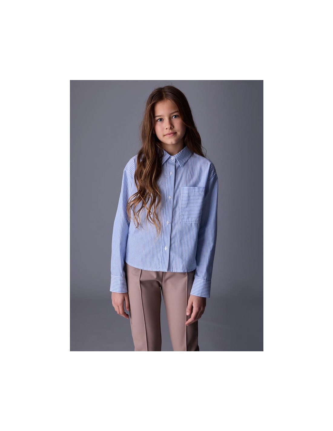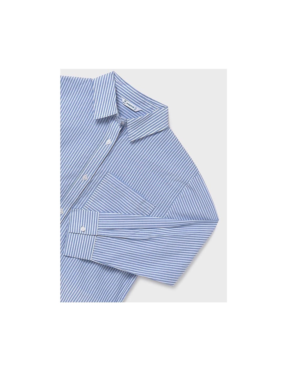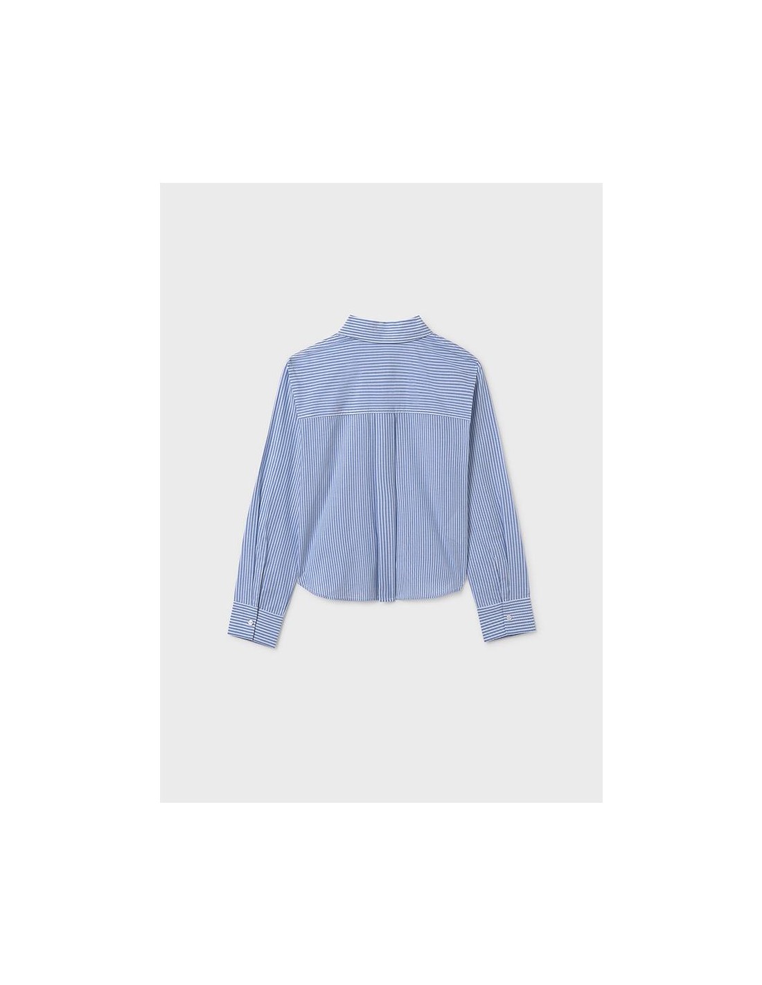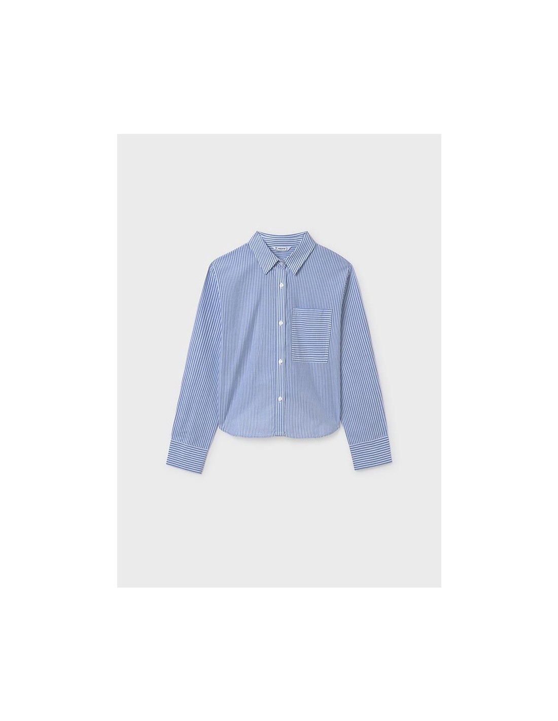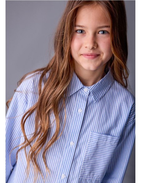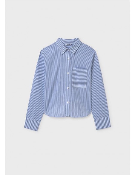 Blusa de manga larga con bajo redondeado para chica. Cuello camisero. Cierre con botones en la parte delantera. Cómodo tejido de popelín, duradero y de fácil cuidado.