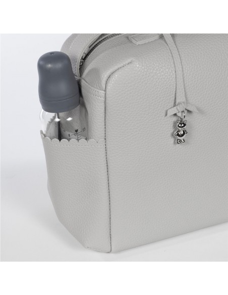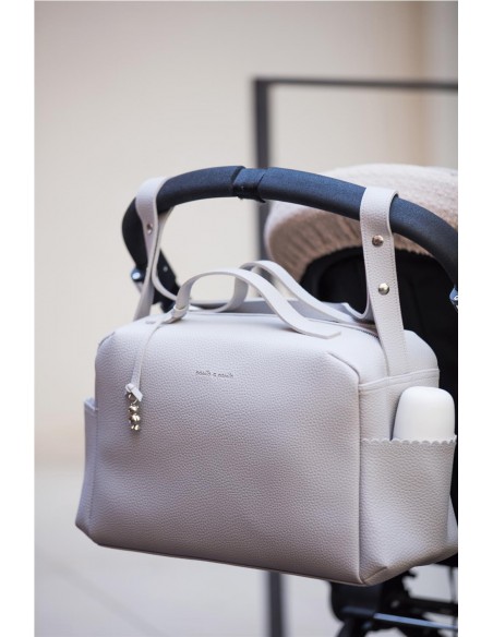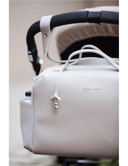 La bolsa para carrito de bebé o el bolso para silla de paseo Icon Smoke de Pasito a pasito es un modelo único, elaborado en resistente y delicada polipiel para llevar todo lo que necesita tu bebé al salir de casa. Es un diseño muy elegante y práctico que ofrece gran capacidad para que puedas llevar de todo. Viene acondicionado con doble asa, una larga para colgar en el hombro y unas cortas de mano. El asa larga incorpora broches metalicos a presión para poder colgarla al cochecito.