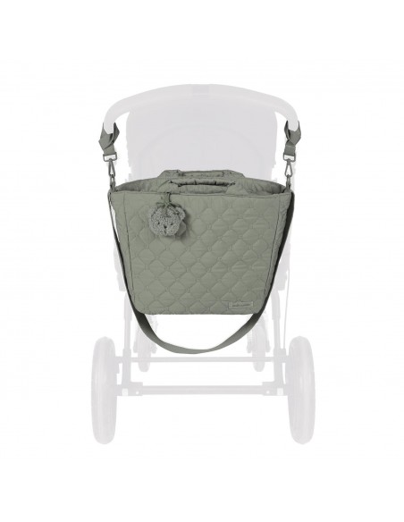 La bolsa para carrito de bebé o el bolso para silla de paseo Paddington verde de Pasito a pasito es un modelo único,elaborado en un resistente material acolchado para llevar todo lo que necesita tu bebé al salir de casa. Es un diseño muy elegante y práctico que ofrece gran capacidad para que puedas llevar de todo. Viene acondicionado con doble asa, una larga para colgar en el hombro y unas cortas de mano. Incluye asas adicionales universales para colgarla al cochecito.