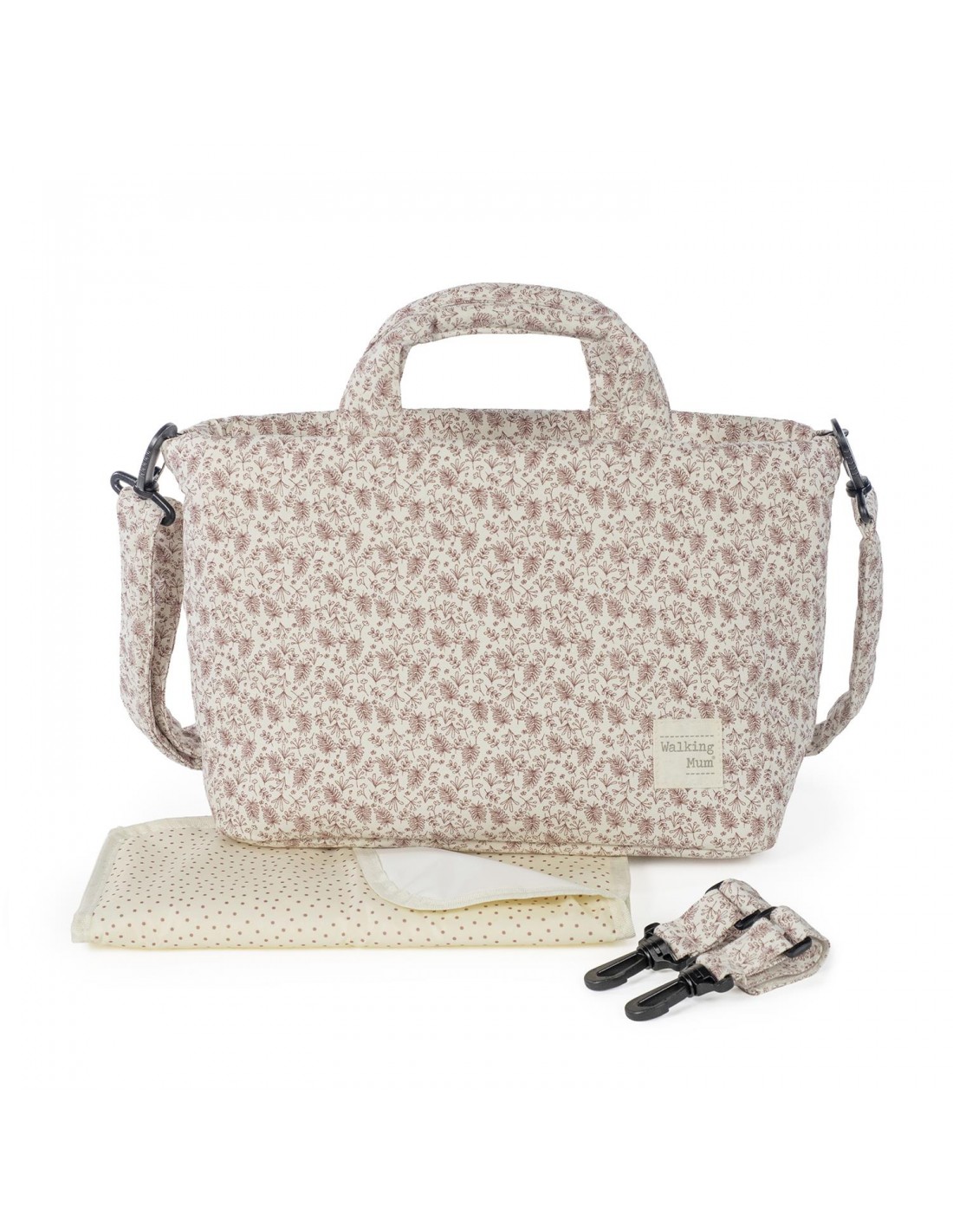 Bolso cambiador Gala Cerise con estampado floral para silla de paseo que incluye cambiador para bebe. Bolsa canastilla muy ligera, resistente y de gran capacidad para llevar todo lo necesario para el paseo del bebe. Tiene multiples bolsillos para poder tener todo ordenado. En el interior incopora un bolsillo plastificado para la ropa húmeda, un bolsillo térmico para biberones y dos bolsillos para lo que necesites tener más a mano.La bolsa tiene un sistema universal de fijación, con 2 asas cortas