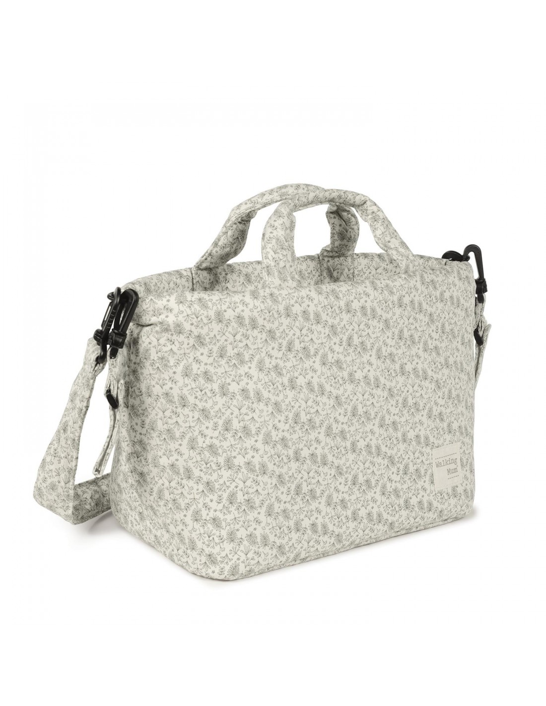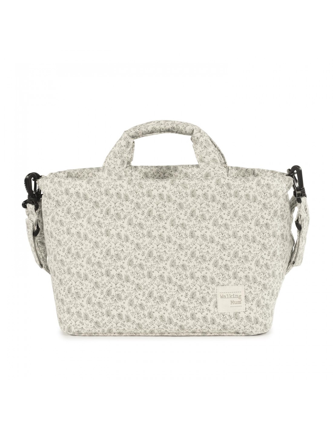 Bolso cambiador Gala Mint con estampado floral para silla de paseo que incluye cambiador para bebe. Bolsa canastilla muy ligera, resistente y de gran capacidad para llevar todo lo necesario para el paseo del bebe. Tiene multiples bolsillos para poder tener todo ordenado. En el interior incopora un bolsillo plastificado para la ropa húmeda, un bolsillo térmico para biberones y dos bolsillos para lo que necesites tener más a mano. La bolsa tiene un sistema universal de fijación, con 2 asas cortas