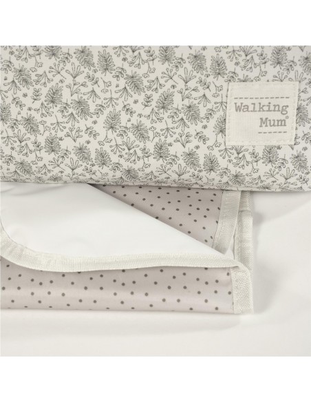 Bolso cambiador Gala Mint con estampado floral para silla de paseo que incluye cambiador para bebe. Bolsa canastilla muy ligera, resistente y de gran capacidad para llevar todo lo necesario para el paseo del bebe. Tiene multiples bolsillos para poder tener todo ordenado. En el interior incopora un bolsillo plastificado para la ropa húmeda, un bolsillo térmico para biberones y dos bolsillos para lo que necesites tener más a mano. La bolsa tiene un sistema universal de fijación, con 2 asas cortas