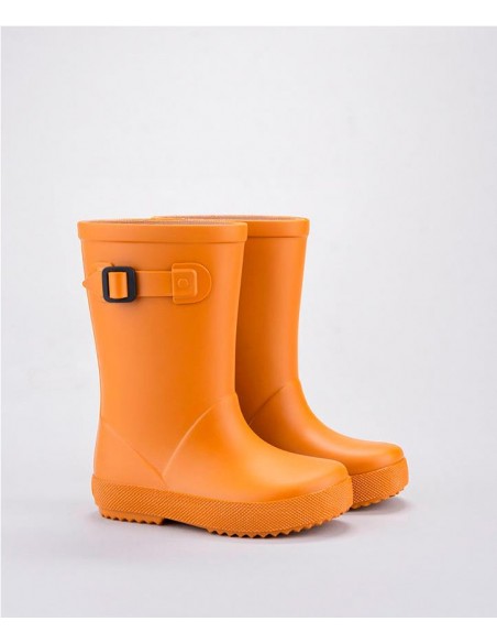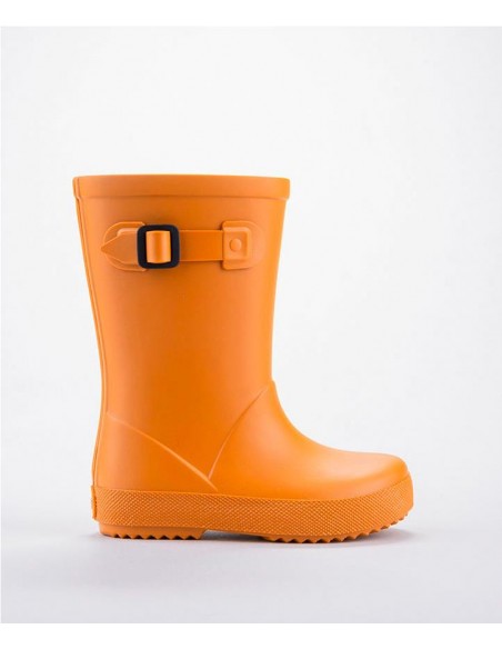 Botas de agua monocolor rojo con acabado mate, hebilla en el lateral, logo en el talón y plantilla confort extraíble. ¡Consigue un total look by IGOR con los chubasqueros impermeables Euri!
