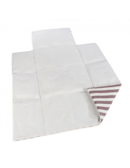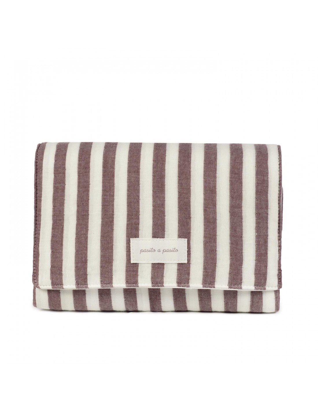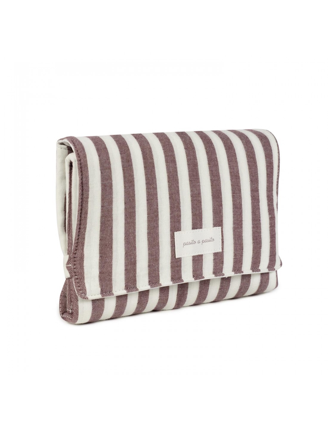 El cambiador para bebé Cherry Rayas de Pasito a pasito elaborado elaborado en algodón 100% con un delicado tejifo de rayas, es un modelo muy cómodo, práctico y fácil de transportar. Un patrón especialmente ideado para utilizarlo cuando necesites cambiar a tu bebé. Es plegable para facilitar su trasladarlo a todos lados. Es un diseño tan elegante como funcional, porque se presenta en formato plegado para hacerlo portátil. Cuenta con cintas de agarre de cierre para mantener el cambiador cerrado y