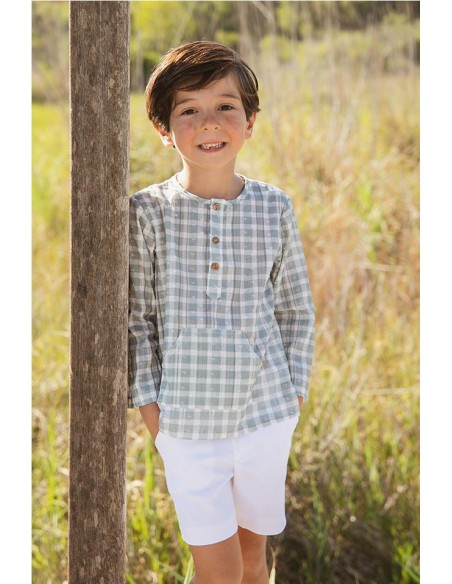 CAMISAS CAMISA CUADROS HOLANDA DE FOQUE FOQUE MODA INFANTIL 2515526 46,00 € 2A NARANJA  Añadir al carrito Camisa de cuadros en tonos pastel de la Colección Holanda, diseñada para un look fresco y actual. Confeccionada en tejido ligero y transpirable, cuenta con cuello clásico, cierre de botones de madera y un bolsillo decorativo en el pecho. Su estampado suave la convierte en una prenda versátil, ideal para ocasiones especiales y paseos diarios. Añadir al carrito
