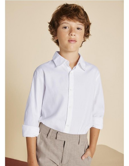 CAMISAS CAMISA CUELLO MAO LINO SPAGNOLO 504460013399 38,95 € 8 14 16 BLANCO  Añadir al carrito Camisa de niño de manga larga con cuello mao y puños sencillos. Confeccionada en tejido de lino liso con bordado de logo Spagnolo al tono en el pecho. Añadir al carrito