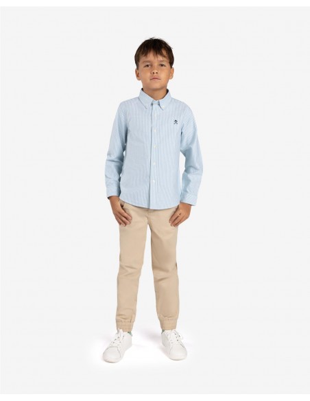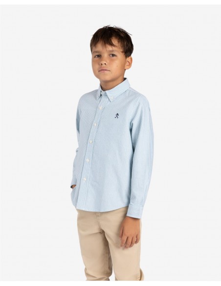 Camisa manga larga 100 % algodón, ligera, suave y con carácter. Esta camisa de algodón toma inspiración del estilo mediterráneo más relajado. Ideal para looks informales con un toque pulido. Estilo cuidado desde temprana edad.