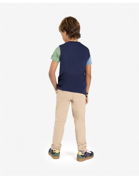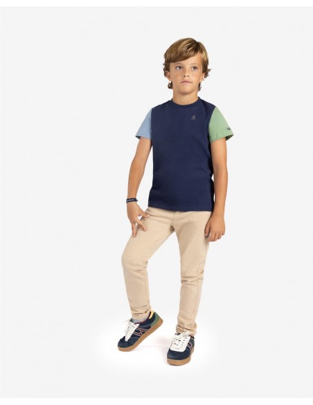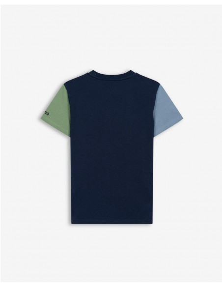 Camiseta manga corta 100% algodón. Diseño color block con contraste de mangas y logo bordado. Un guiño a la estética college, pensada para destacar. Estilo con energía y actitud.