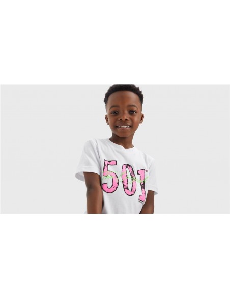 Fabricada con tejido de punto suave, esta camiseta clásica de manga corta de Levi's® está inspirada en los jeans clásicos con los que empezó todo: el 501 Original Fit. Presenta un colorido gráfico y un cuello sin etiquetas que resulta muy cómodo y fácil de llevar