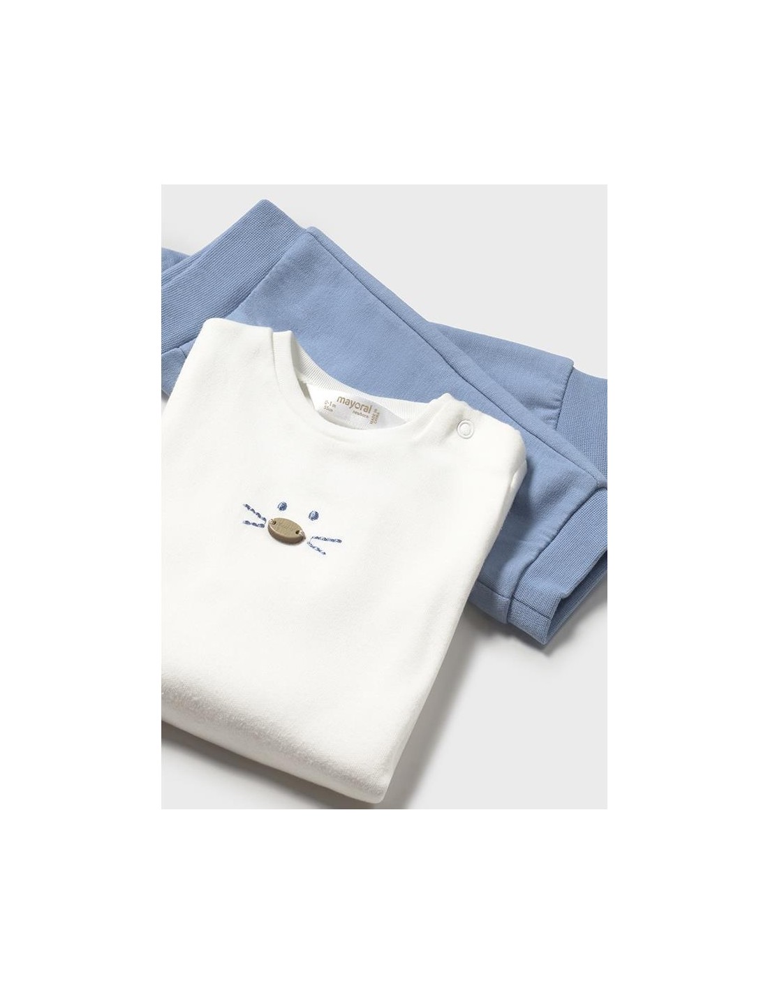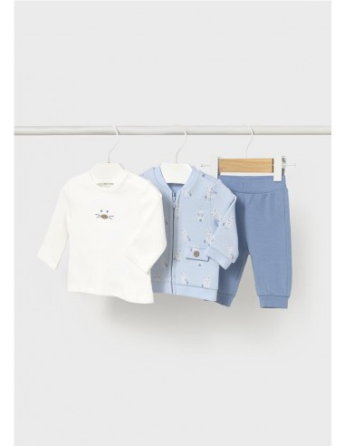 Chándal de tres piezas para recién nacido compuesto por una sudadera, un pantalón largo deportivo y una camiseta a juego.