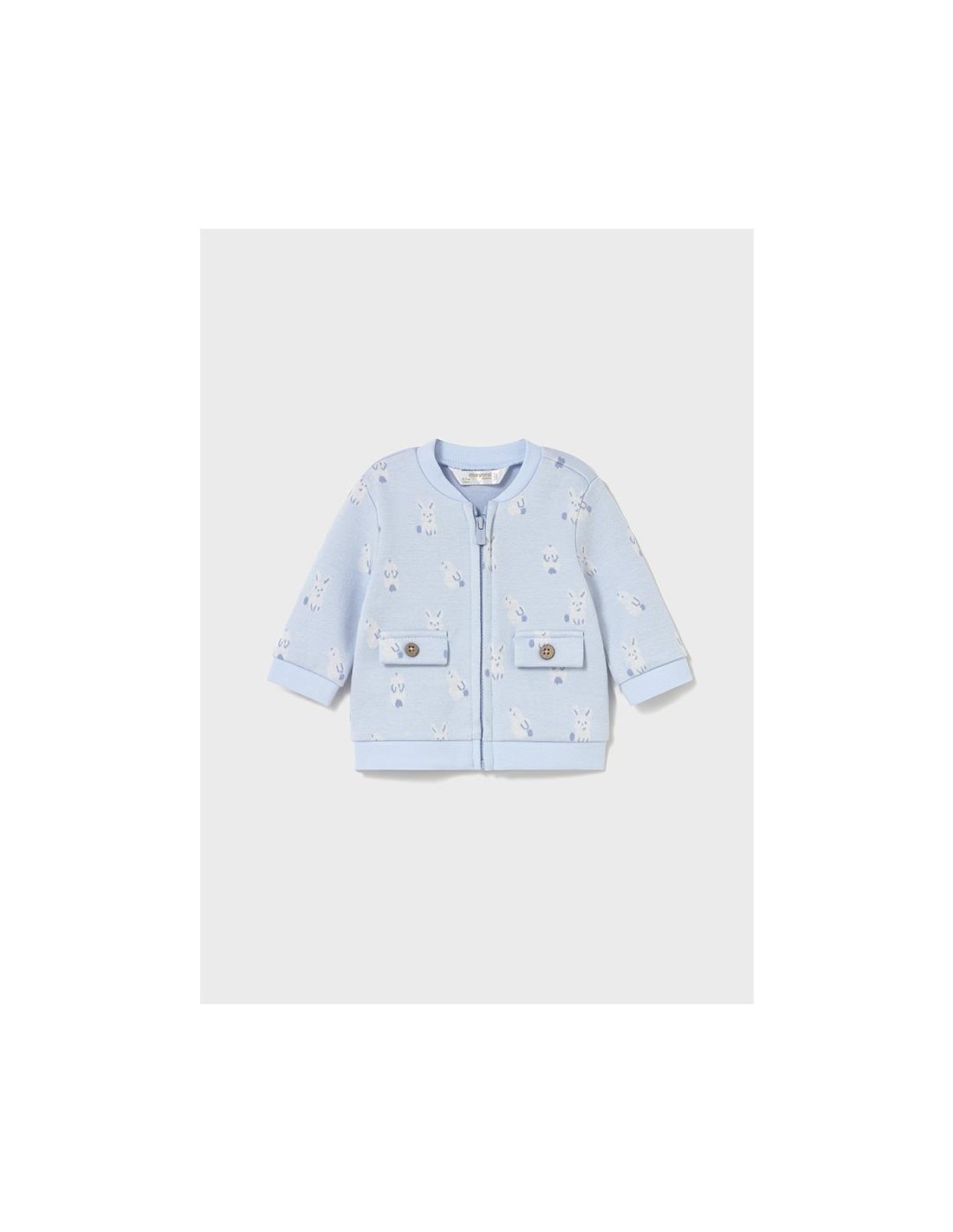 Sudadera de manga larga para recién nacido. Cuello bomber. Cierre central delantero con cremallera. Elementos de adorno: bolsillo decorativo.