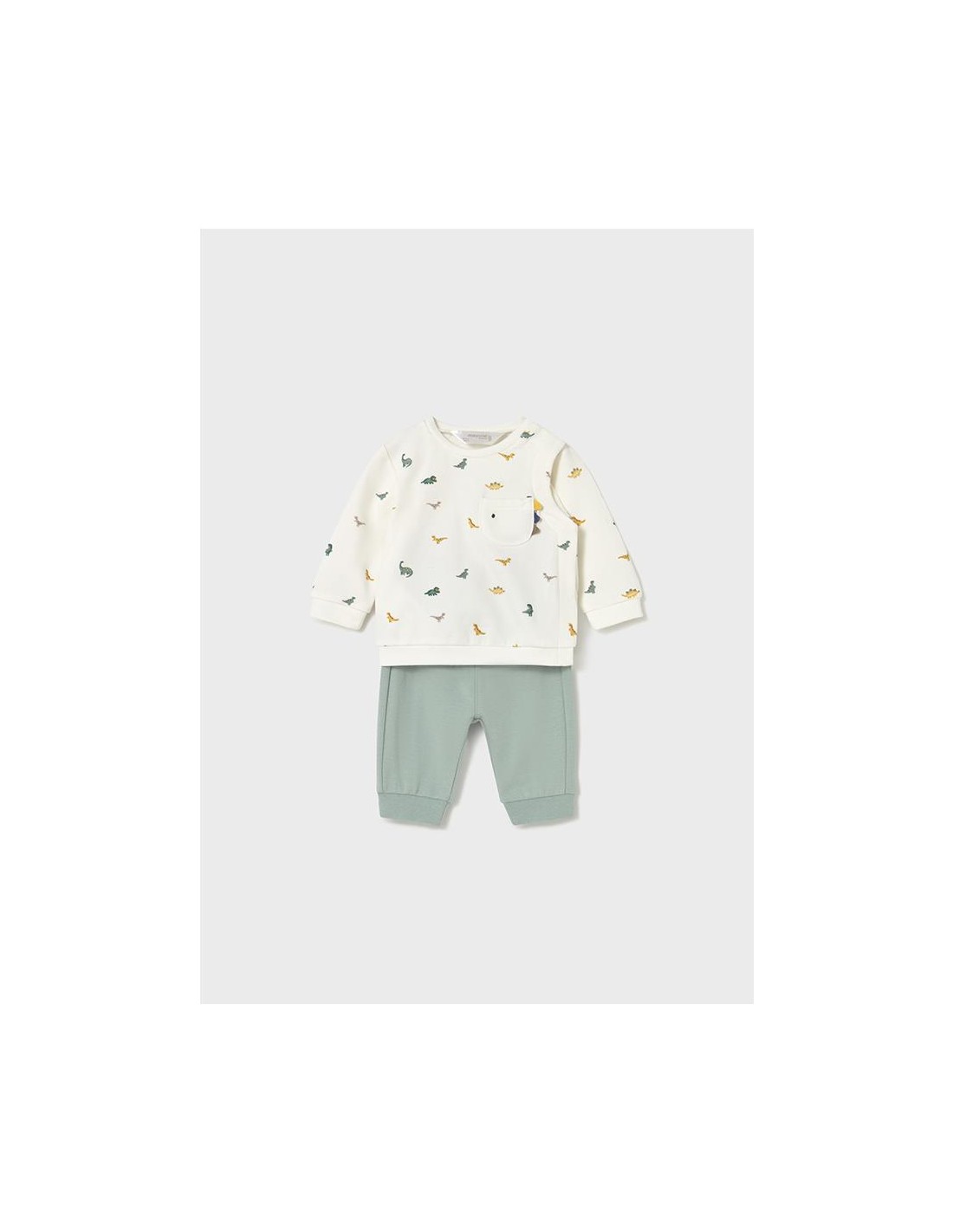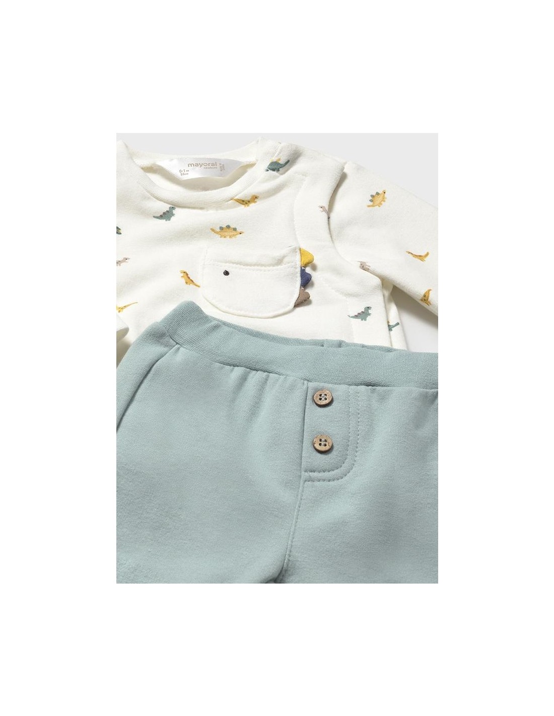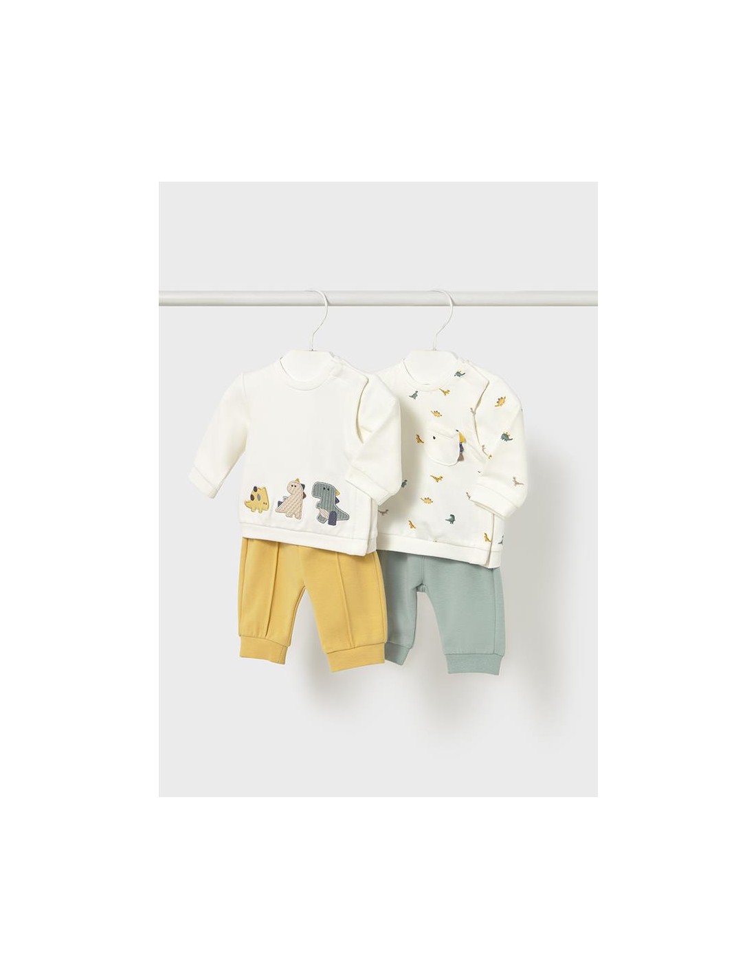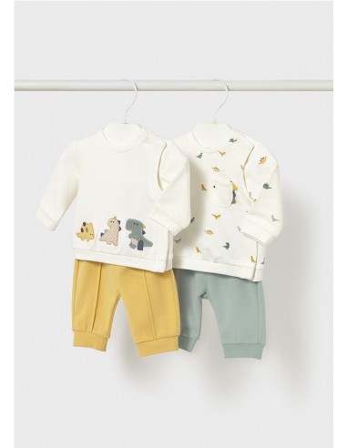 Set de cuatro piezas para recién nacido formado por dos conjuntos de sudadera y pantalón largo combinables.
