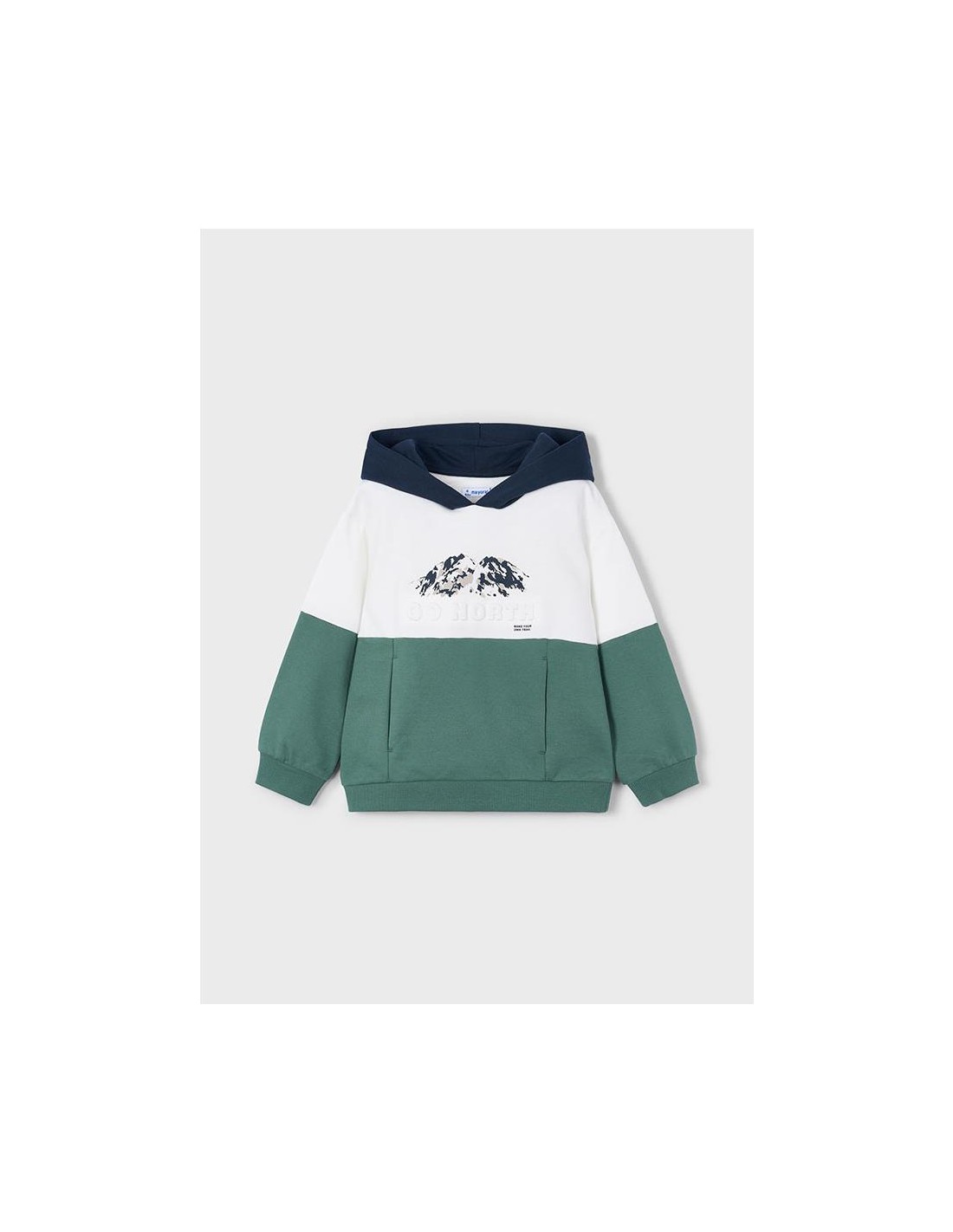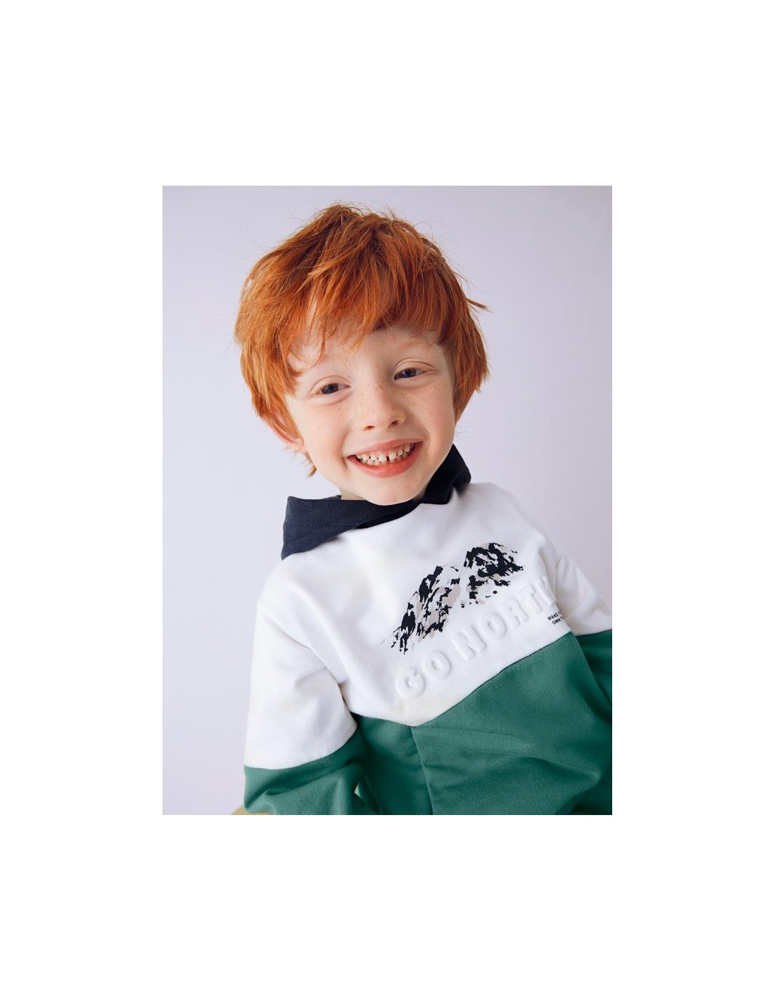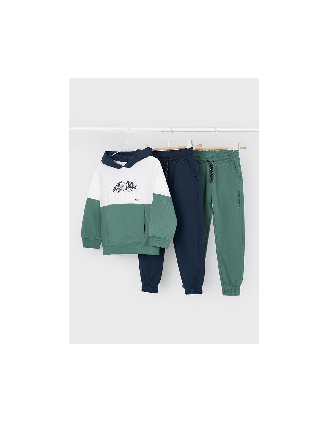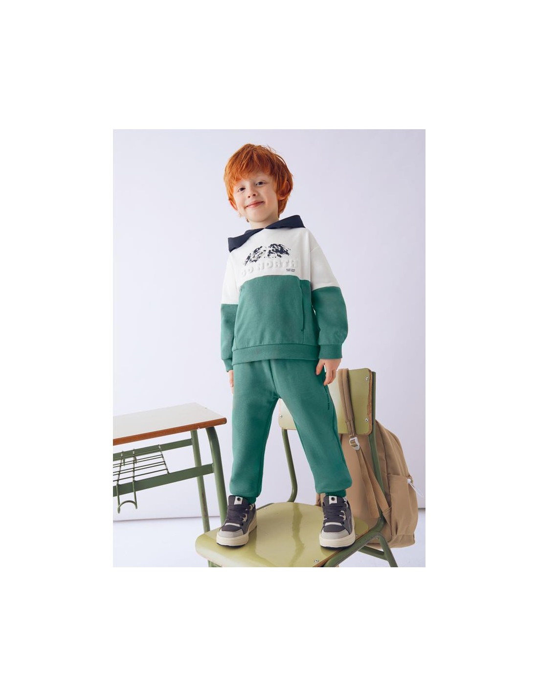 Chándal de tres piezas para niño compuesto por una sudadera y dos pantalones largos deportivos.Sudadera de manga larga para niño. Cuello con capucha. Bolsillo funcional en la parte delantera. Elementos de adorno: detalle en relieve (embossed), serigrafía (print).