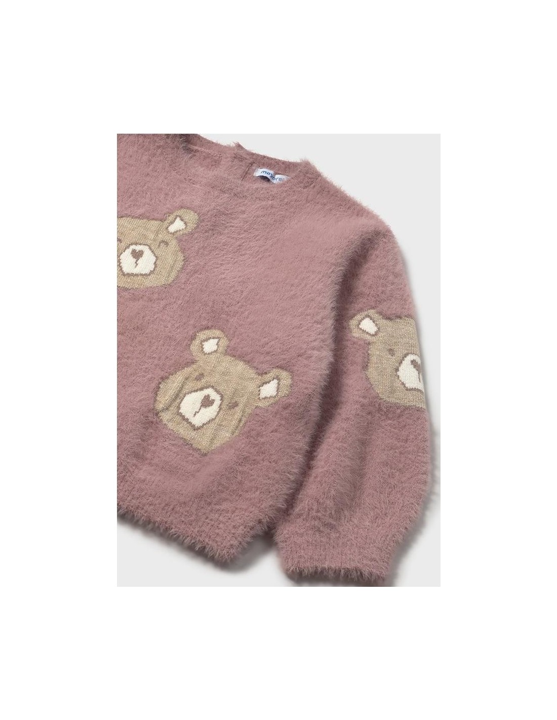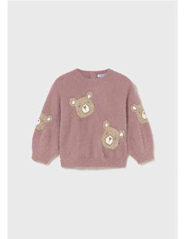 Jersey de manga larga para bebé. Cuello redondo. Cierre con botones en la espalda para facilitar la puesta de la prenda. Dibujo tejido con técnica intarsia.