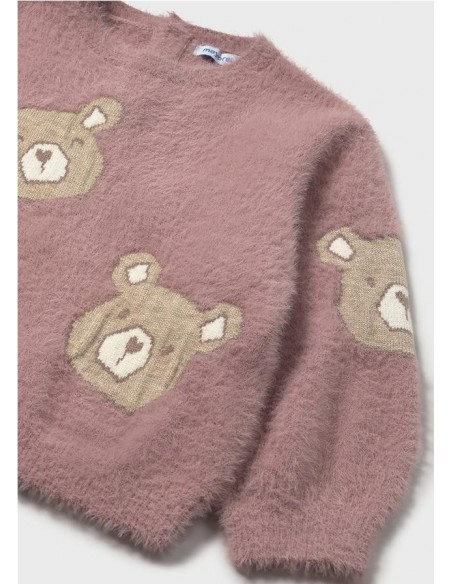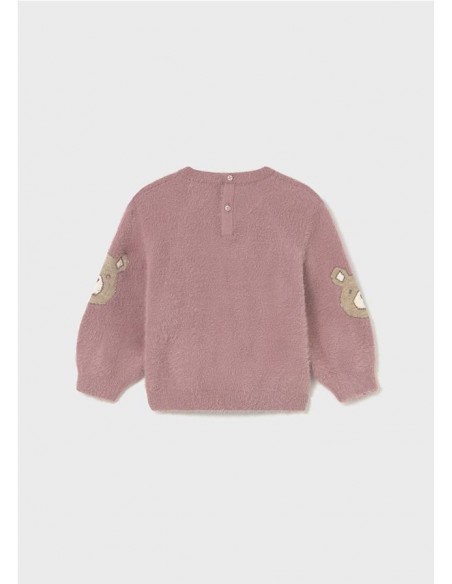 Jersey de manga larga para bebé. Cuello redondo. Cierre con botones en la espalda para facilitar la puesta de la prenda. Dibujo tejido con técnica intarsia.