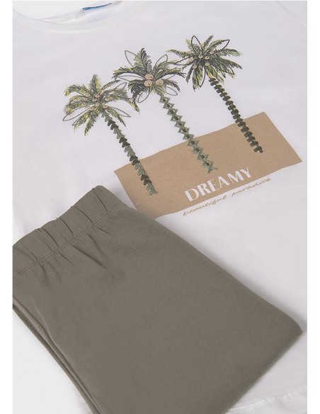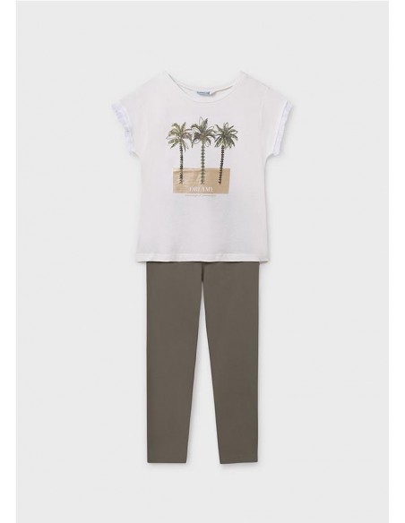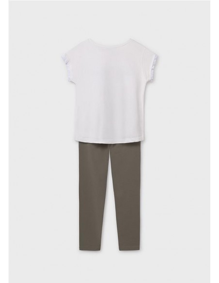 Conjunto de dos piezas para chica compuesto por una camiseta y un pantalón tipo legging combinado.