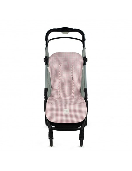 La colchoneta para silla de paseo I love vichy rosa es el forro ideal para cubrir el asiento de tu bebé durante el verano, protegiendo su piel de las rozaduras e irritaciones del calor y además mantienes el tapizado original como nuevo. Está elaborada con un material transpirable que ayuda a prevenir la sudoración excesiva del bebé y protege la sillita haciendo el paseo más confortable. Su esquema de uso universal te permite adaptar el colchón a la mayoría de las sillas de paseo.