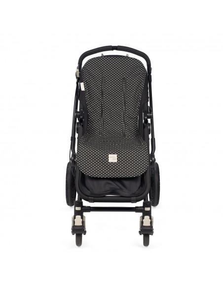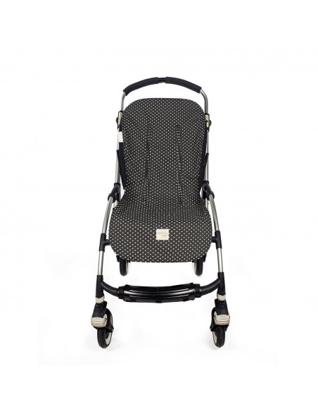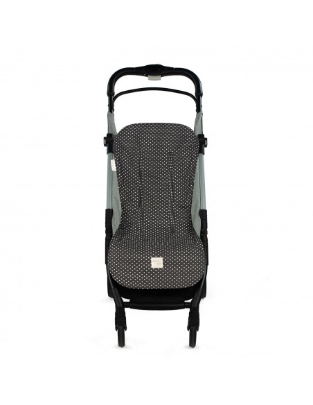 La colchoneta para silla de paseo Emily con topito es el forro ideal para cubrir el asiento de tu bebé durante el verano, protegiendo su piel de las rozaduras e irritaciones del calor y además mantienes el tapizado original como nuevo. Está elaborada con un material transpirable que ayuda a prevenir la sudoración excesiva del bebé y protege la sillita haciendo el paseo más confortable. Su esquema de uso universal te permite adaptar el colchón a la mayoría de las sillas de paseo.