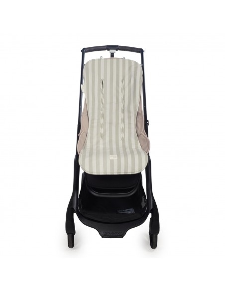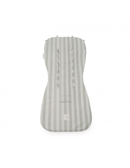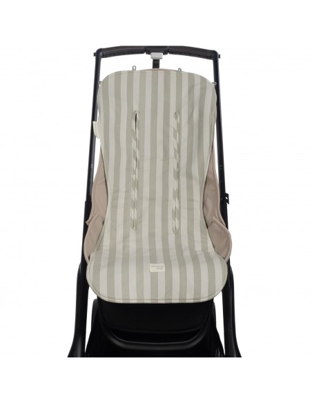 La colchoneta para silla de paseo Sintra verde con estampado de rayas está fabricado con un tejido exterior 100% algodón es el forro ideal para cubrir el asiento de tu bebé durante el verano, protegiendo su piel de las rozaduras e irritaciones del calor y además mantienes el tapizado original como nuevo. Está elaborada con un material transpirable que ayuda a prevenir la sudoración excesiva del bebé y protege la sillita haciendo el paseo más confortable.