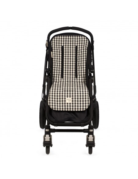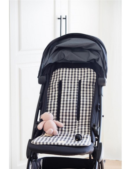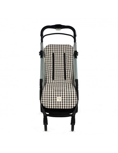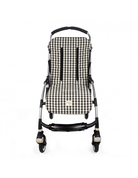La colchoneta para silla de paseo Remy en cuadro vichy XL negro es el forro ideal para cubrir el asiento de tu bebé durante el verano, protegiendo su piel de las rozaduras e irritaciones del calor y además mantienes el tapizado original como nuevo. Está elaborada con un material transpirable que ayuda a prevenir la sudoración excesiva del bebé y protege la sillita haciendo el paseo más confortable. Su esquema de uso universal te permite adaptar el colchón a la mayoría de las sillas de paseo.