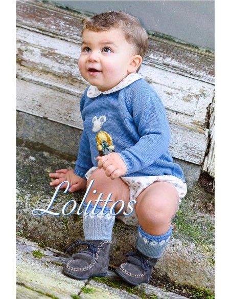 CONJUNTOS RANITA JUBÓN NIÑO CON CUBRE BORREGUITO LOLITTOS LOLITTOS 25/94 60,80 € 3M 9M AZUL CLARO Añadir al carrito El conjunto de jubón para niño de la colección Borreguito de Lolittos está formado por un jersey de punto azul con estampado de borreguitos y cuello bebé en cuadritos de vichy azul y blanco al igual que el cubre. Añadir al carrito