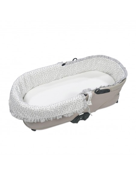 El cubre cuco con dual y sábana bajera ajustable Little Bloom Flor gris de Pasito a Pasito es el complemento perfecto para aportar suavidad y elegancia al capazo de tu bebé. Fabricado en algodón 100%, garantiza un tacto delicado y transpirable, ideal para la piel sensible del recién nacido. El cubre capazo dual se ajusta perfectamente al interior del capazo. Su diseño ajustable con lazos garantiza una perfecta adaptación al cuco proporcionando un acabado envolvente y seguro.