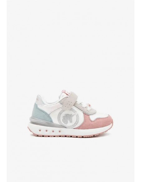 Deportivos multicolor con luces y detalles de unicornio. Una pieza perfecta para sus estilismos más sport. Confeccionadas con material sintético y plantilla interior textil. Su cierre de tira adherente en la parte delantera y sus cordones elásticos permiten una sujeción perfecta y ajustable para los peques. ¡Son muy fáciles de poner y quitar! También cuenta con una suela track de goma contrastada que permite un agarre perfecto y máximo confort.