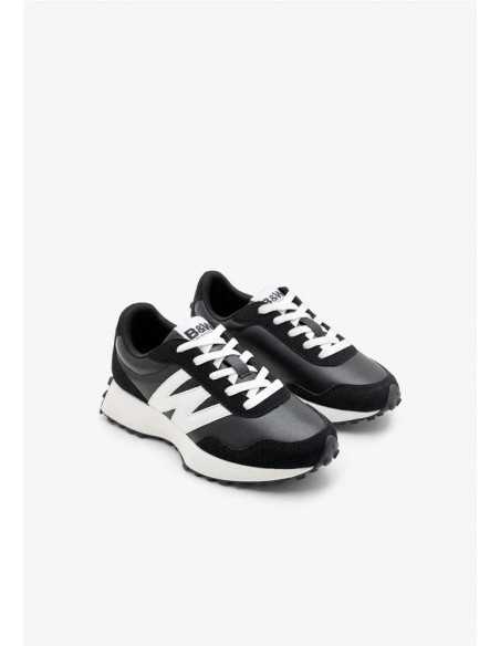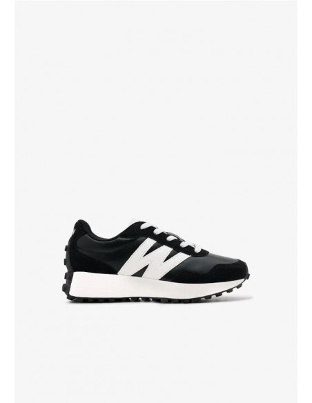 Este modelo está confeccionado con textil y presenta un acabado en negro y blanco. Además, cuenta con el detalle de la letra W en su lateral y logo de en la parte del talón. Su cierre de cordones permite un ajuste perfecto y gran comodidad.