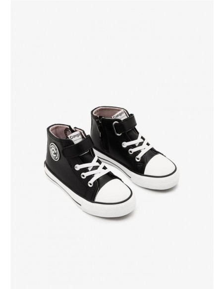 Diseñadas con material de piel sintética y plantilla interior textil. Cuenta tanto con cordoneras como con un cierre de tira adherente que permite una sujeción perfecta para los más pequeños. Además, son fáciles de poner y quitar gracias a su cremallera interior.
