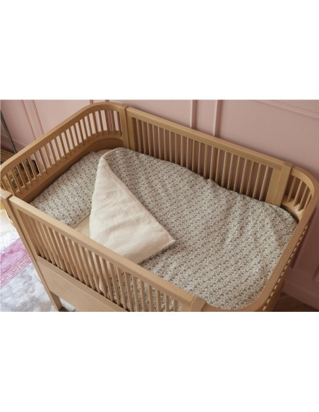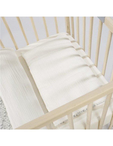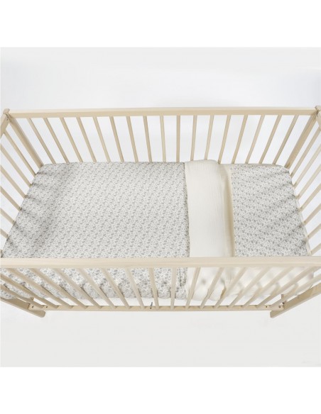 Diseñado para cunas de 120×60 cm. Pensado para ofrecer el máximo confort y un toque de elegancia a la habitación de tu pequeño, este conjunto es ideal para arropar a tu bebé con suavidad y seguridad. Este set esencial para el descanso de tu bebé se compone de cuatro piezas fundamentales: sábana bajera ajustable confeccionada en suave muselina 100% algodón que garantiza un ajuste perfecto al colchón y una transpirabilidad superior para evitar el calor. Funda nórdica elaborada en 100% algodón.