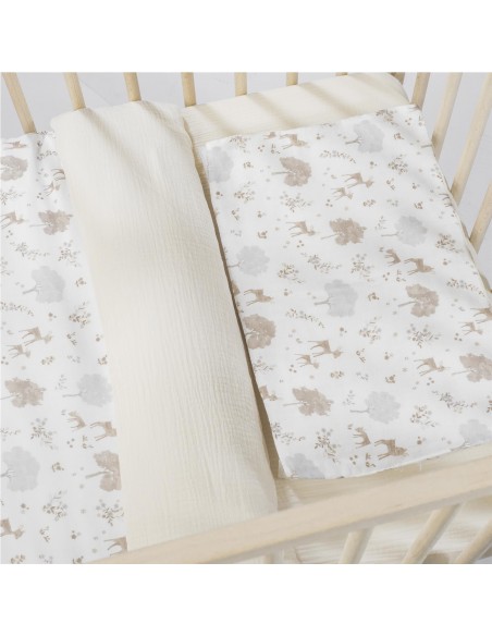 Set completo para minicuna de 90×50 cm Nara de Pasito a Pasito: edredón, funda, sábana bajera y almohada. Prepara el nido perfecto para tu bebé con el set completo de ropa de minicuna 90×50 cm de la adorable colección Nara de Pasito a Pasito. Este conjunto todo en uno ha sido cuidadosamente diseñado para ofrecer el máximo confort, seguridad y estilo en la habitación de tu pequeño, cumpliendo con la estricta normativa EN-16780 para tu tranquilidad.