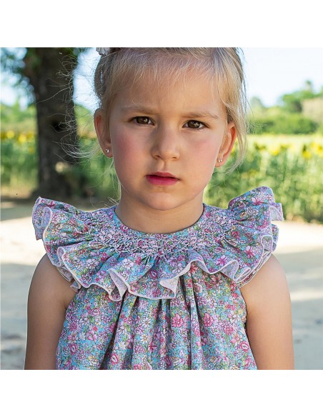 Nuevo JESUSITOS JESUSITO PUNTO SMOCK SINFONIETA SINFONIETTA 7720 85,00 € 3A 4A 5A AZULON Añadir al carrito Jesusito estampado multiflor grande con cuello redondo y bordado punto smock en el cuello y sobre los hombros dando un original acabado al cubre hombro. Añadir al carrito