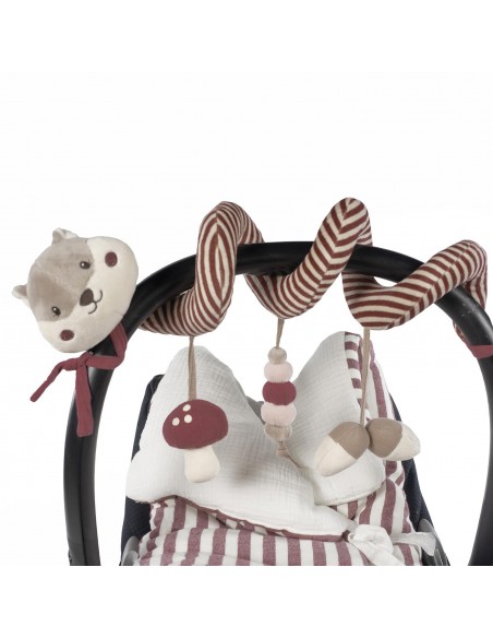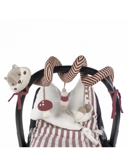 El juguete espiral con ardilla de la colección Cherry Rayas de Pasito a Pasito es el accesorio perfecto para estimular y entretener a tu bebé. Diseñado con materiales ultrasuaves como velour, este juguete es ideal para colgar en el cochecito o la silla del auto, proporcionando horas de diversión y aprendizaje. Fácil de colocar y se adapta a diferentes superficies. Incluye colgantes con diferentes texturas, formas y sonidos para el desarrollo del bebé. Adorable diseño de ardilla con tonos neutros