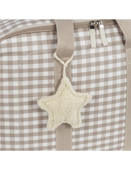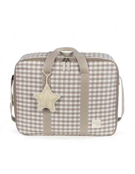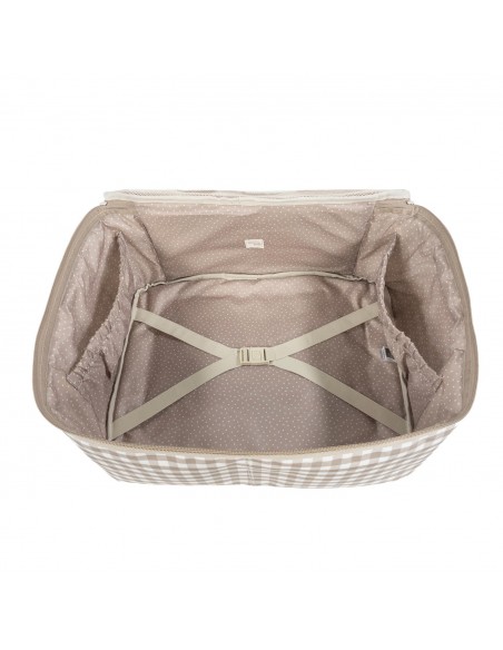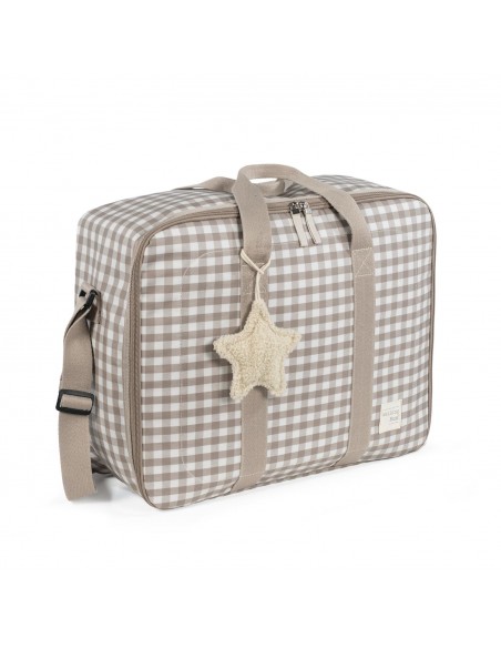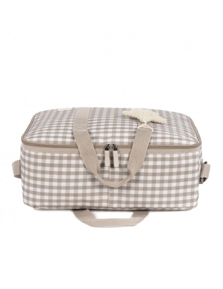 La maleta de bebé Caetana Sand de cuadros beige es un bolso especialmente diseñado para el momento más importante del embarazo, que es la llegada de tu bebé, momento en el que hay un montón de cosas que preparar. Por esto necesitas un espacio cómodo para transportar todo lo necesario para ti, el padre y el niño. Esta maleta de bebé es el modelo perfecto para cubrir todo lo que no puede faltar en este día tan especial. Es cómoda, ligera y manejable con dimensiones rectangulares y apertura cómoda