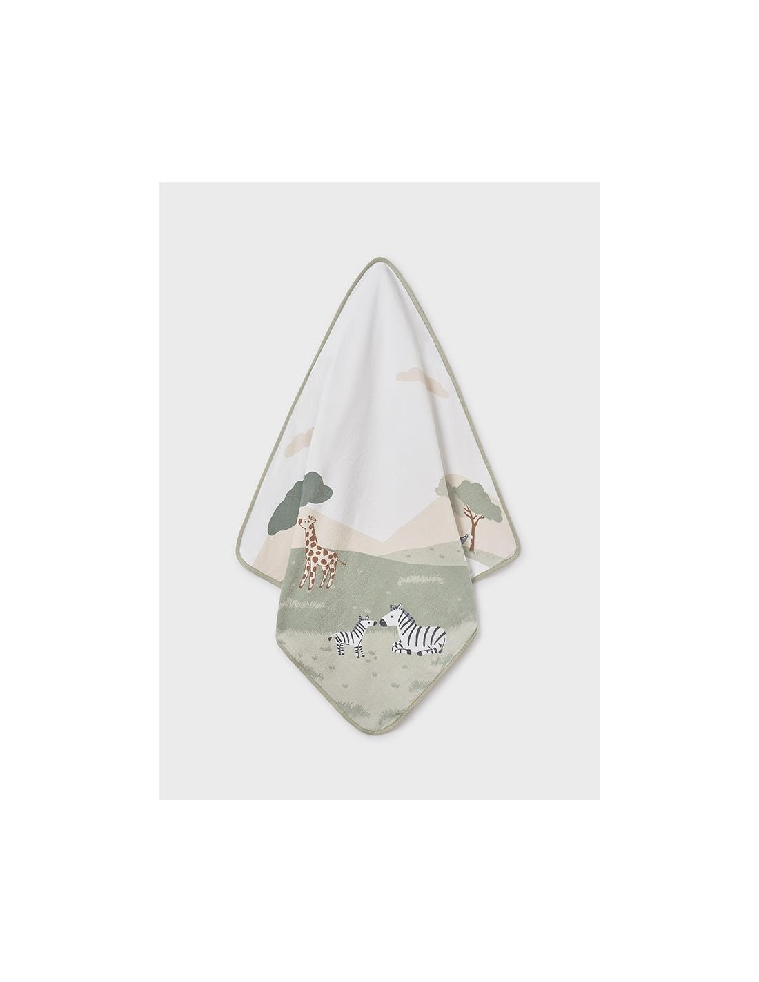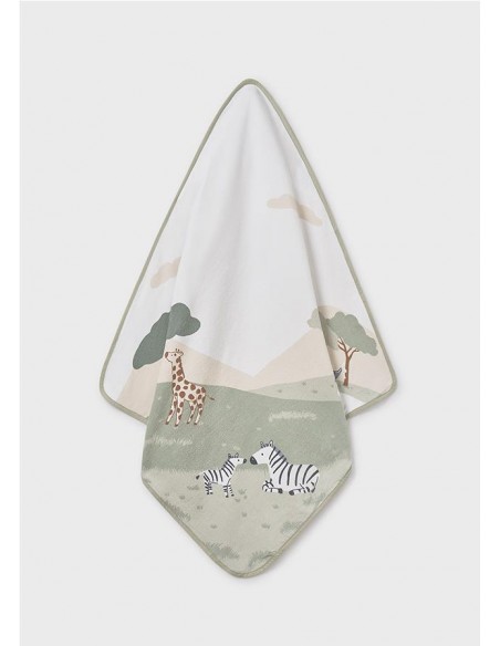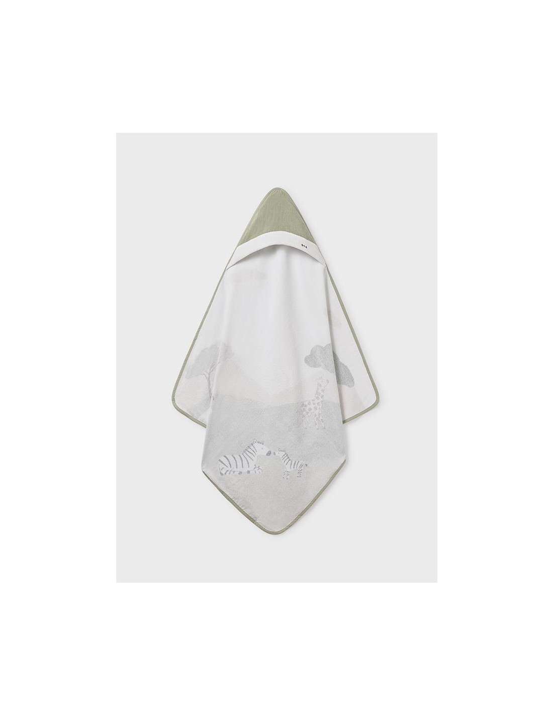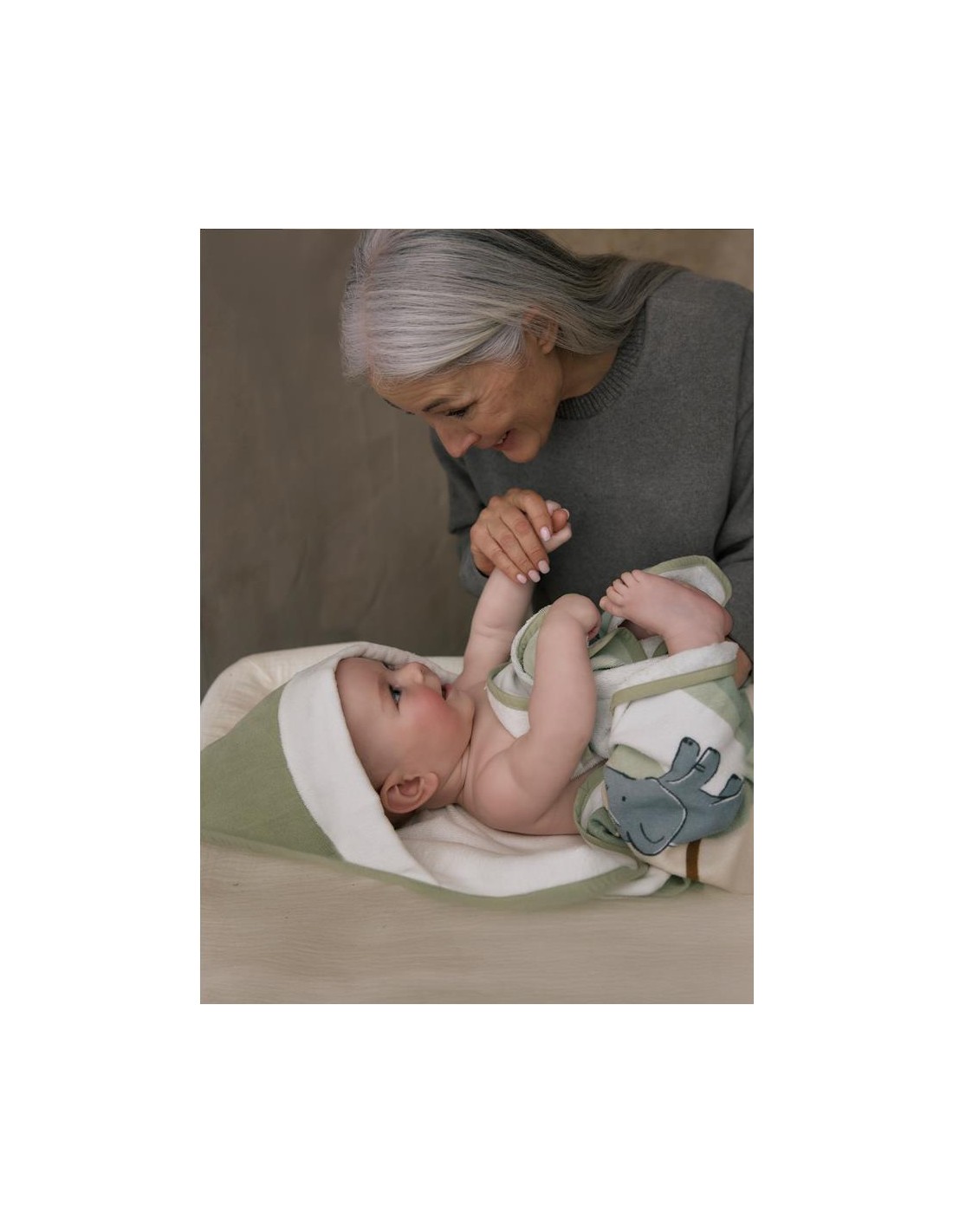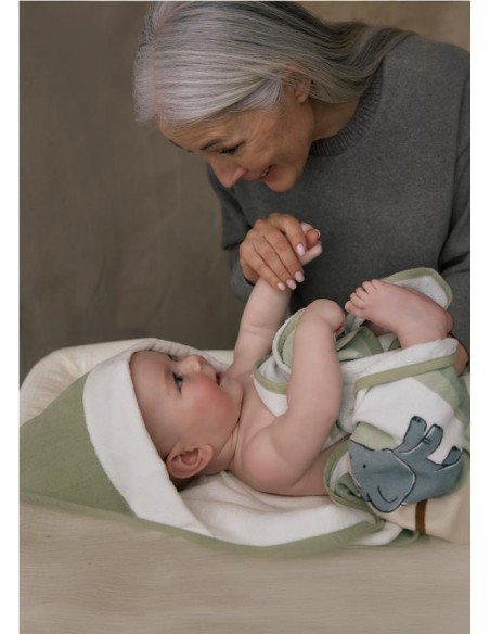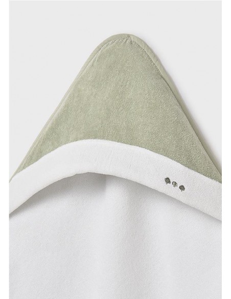 Toalla tipo capa de diseño envolvente con la que podrás secar y abrigar a tu bebé después del baño. Se trata de un artículo de diseño unisex de gran versatilidad por la neutralidad de sus tonos y su forma.