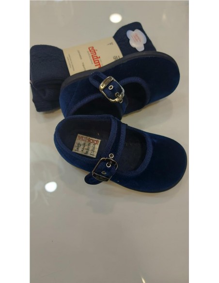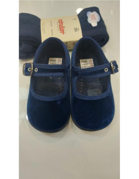 Merceditas terciopelo con tira y hebilla laterlal, piso vulcanizado.