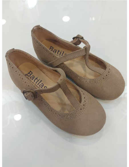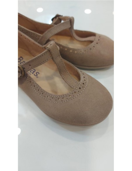Zapato serraje con picados de tira y hebilla para mayor sujección y agarre, piso vulcanizado.