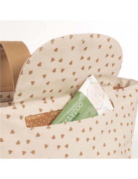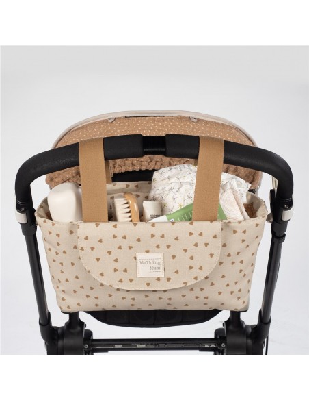 El bolso organizador Poppy Canela con corazones para silla de paseo es un modelo muy ligero además de ser resistente y espacioso para que puedas llevar todo lo que podrías necesitar durante el paseo de tu bebé. Aparte de la gran capacidad que tiene, está distribuido para facilitarte la organización, con varios bolsillos exteriores e interiores que te ayudarán a colocar todos tus complementos ordenados y así puedes ubicarlos más fácil cuando vayas a usarlos.