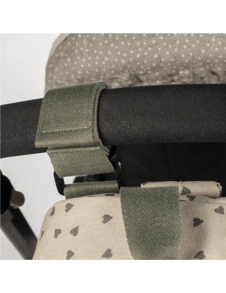 Una bolsa canastilla y mochila al mismo tiempo, muy moderna y urbana, ideal para llevar tus cosas y las de tu bebé, con mucho estilo, a todos sus paseos. La bolsa Poppy Musgo con corazones para silla de paseo es un modelo multifunción muy ligero, resistente y de gran capacidad para llevar todo lo necesario en el paseo del bebe. Su esquema ofrece múltiples bolsillos exteriores e interiores para poder tener todo ordenado y a mano. Tiene bolsillos para guardar los biberones y mantenerlos seguros.