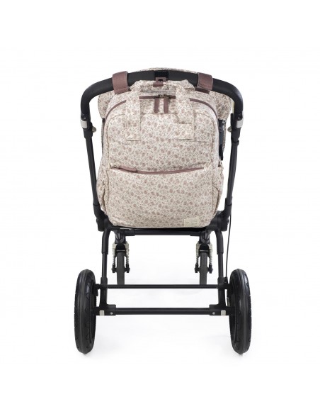 Una bolsa canastilla y mochila al mismo tiempo, ideal para llevar tus cosas y las de tu bebé, con mucho estilo, a todos sus paseos. La mochila Gala Cerise con estampado floral está fabricada en 100% algodón con un tratamiento waterproof. La mochila para silla de paseo es un modelo multifunción muy ligero, resistente y de gran capacidad para llevar todo lo necesario en el paseo del bebe. Su esquema ofrece 3 bolsillos exteriores y 4 interiores para poder tener todo ordenado y a mano.
