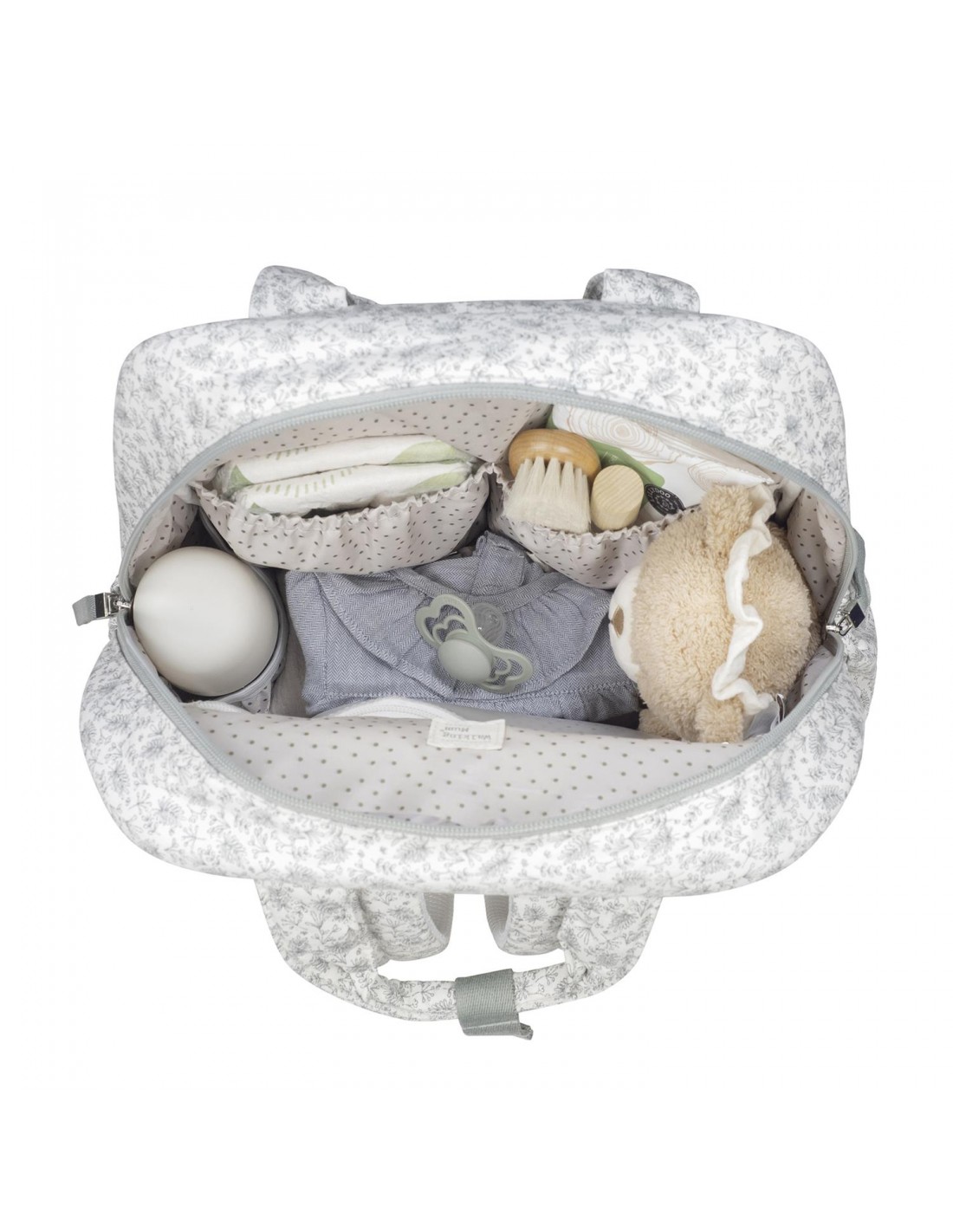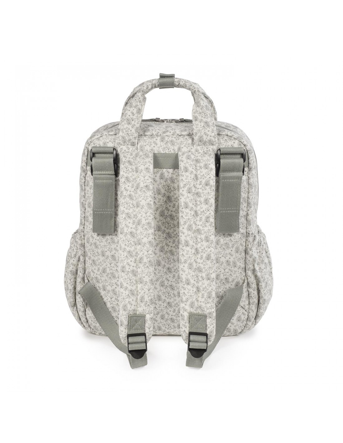 Una bolsa canastilla y mochila al mismo tiempo, ideal para llevar tus cosas y las de tu bebé, con mucho estilo, a todos sus paseos. La mochila Gala Mint con estampado floral está fabricada en 100% algodón con un tratamiento waterproof. La mochila para silla de paseo es un modelo multifunción muy ligero, resistente y de gran capacidad para llevar todo lo necesario en el paseo del bebe. Su esquema ofrece 3 bolsillos exteriores y 4 interiores para poder tener todo ordenado y a mano.