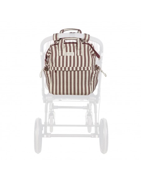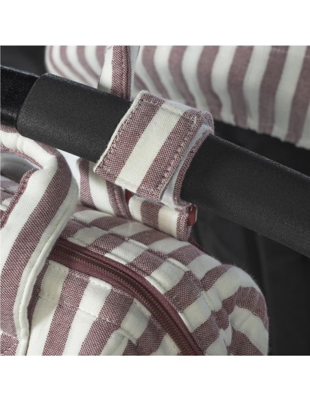 Descubre la mochila maternal Cherry Rayas de Pasito a Pasito, confeccionada en algodón 100% con un delicado tejido de rayas. Su tratamiento waterproof la hace resistente al agua, garantizando protección y durabilidad en el día a día. Esta mochila ofrece gran capacidad y múltiples compartimentos, facilitando la organización de todo lo necesario para el bebé. Bolsillos interiores y exteriores para tenerlo todo a mano y en orden. También incorpora dos bolsillos laterales para botellas o biberones.