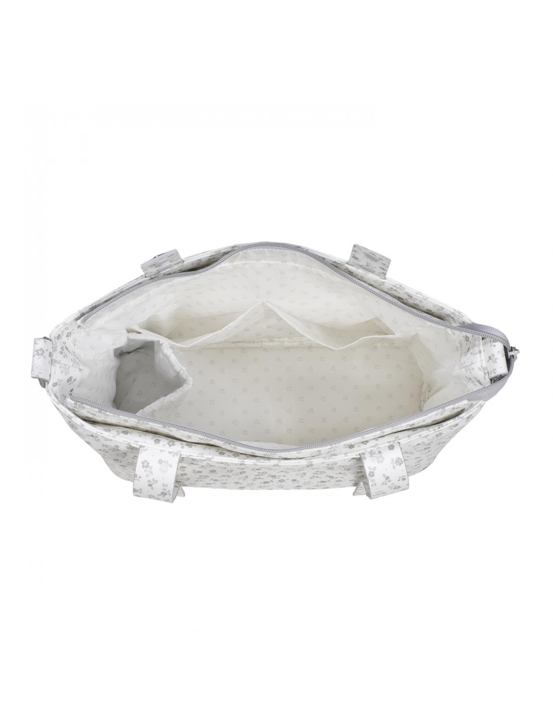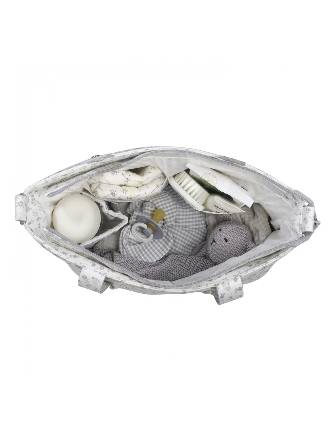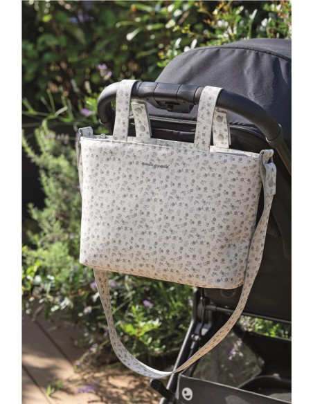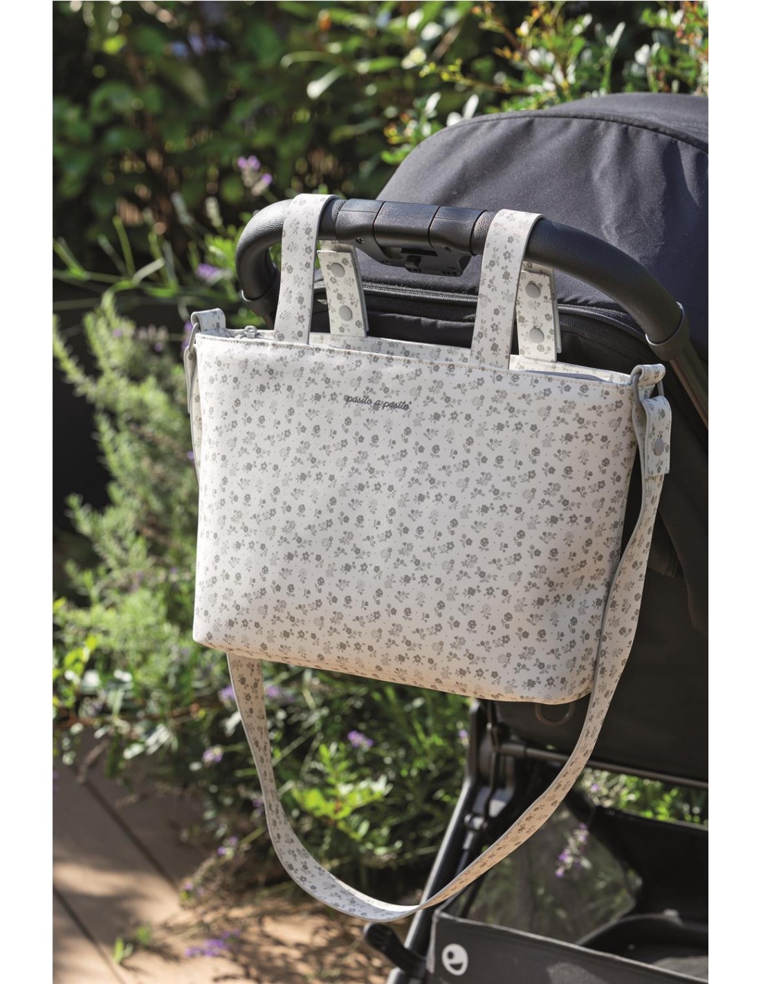 El bolso organizador o crossbody Little Bloom Flores gris de Pasito a pasito elaborado en resistente y delicada polipiel impresa en flores para silla de paseo es un modelo muy ligero además de ser resistente y espacioso para que puedas llevar todo lo que podrías necesitar durante el paseo de tu bebé. Aparte de la gran capacidad que tiene, está distribuido para facilitarte la organización, con varios bolsillos que te ayudarán a colocar todos tus complementos ordenados.