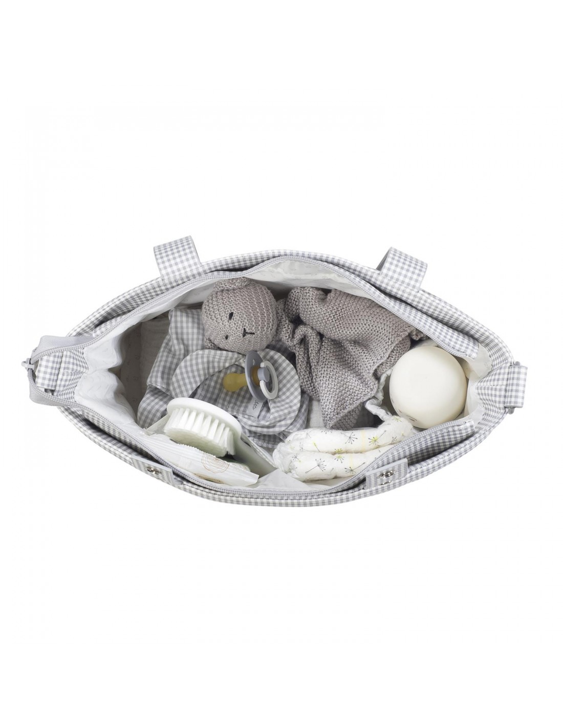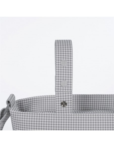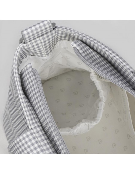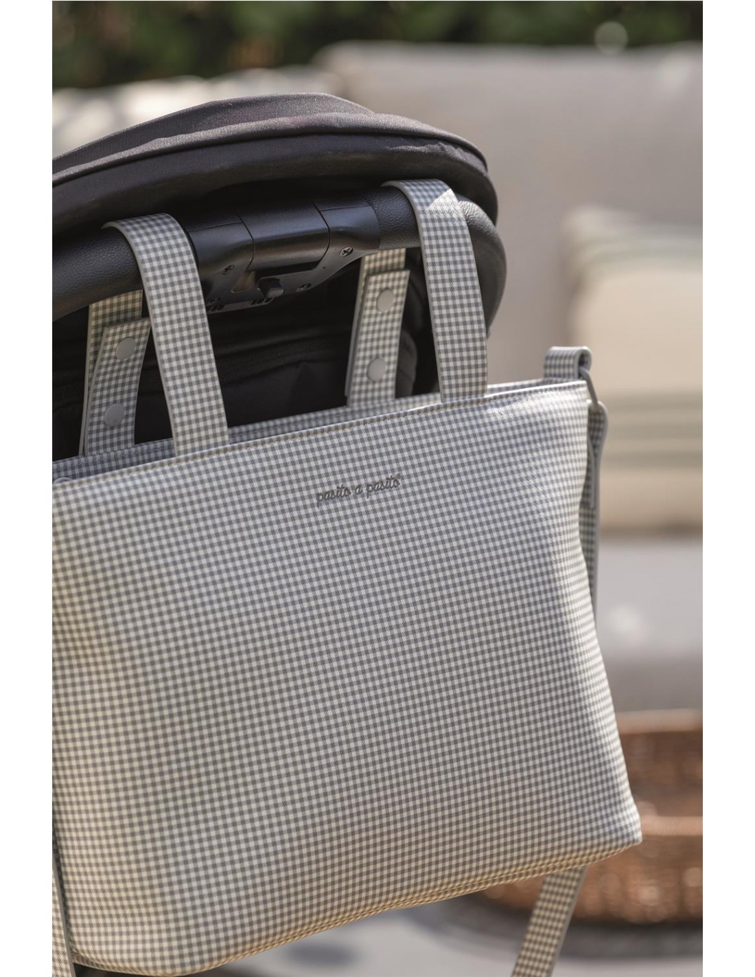 El bolso organizador o crossbody Little Bloom Vichy gris de Pasito a pasito elaborado en resistente y delicada polipiel impresa en vichy para silla de paseo es un modelo muy ligero además de ser resistente y espacioso para que puedas llevar todo lo que podrías necesitar durante el paseo de tu bebé. Aparte de la gran capacidad que tiene, está distribuido para facilitarte la organización, con varios bolsillos que te ayudarán a colocar todos tus complementos ordenados.