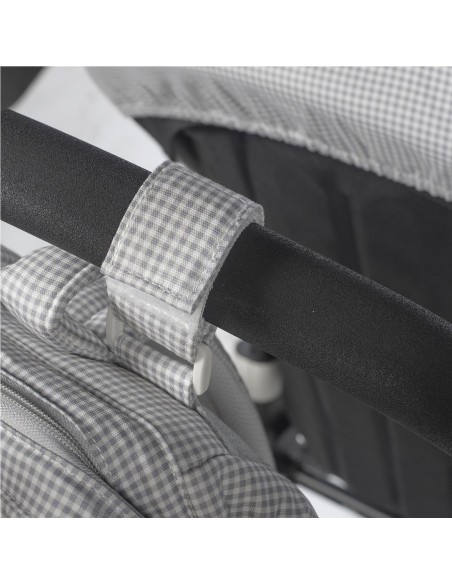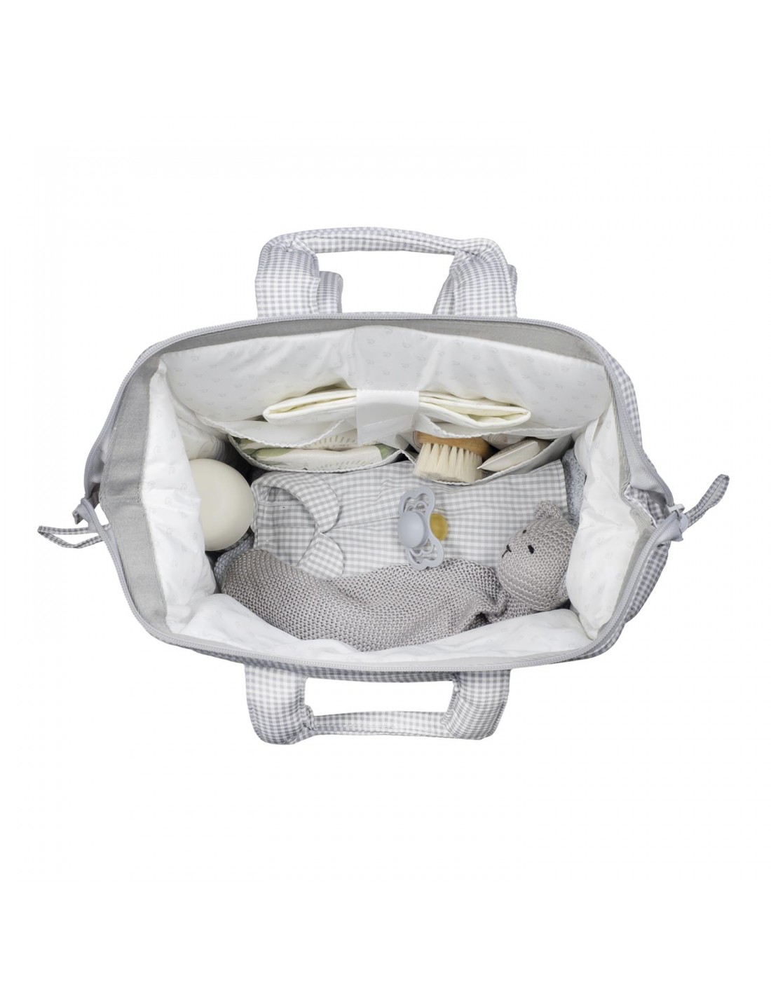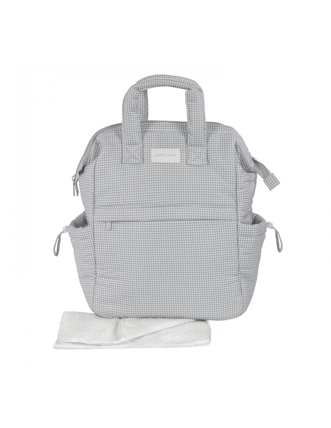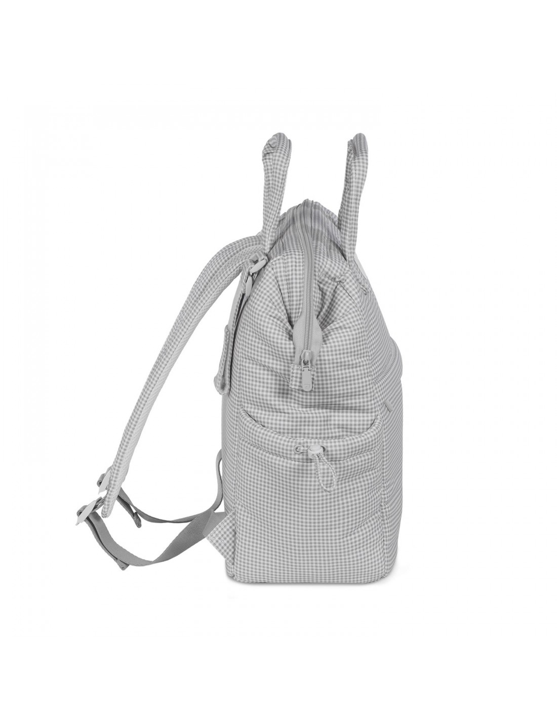 La mochila maternal Little Bloom Vichy gris de Pasito a Pasito, confeccionada en loneta de algodón 100% con un delicado estampado de cuadros. Su tratamiento water resistant la hace resistente al agua, garantizando protección y durabilidad en el día a día. Esta mochila ofrece gran capacidad y múltiples compartimentos, facilitando la organización de todo lo necesario para el bebé. Bolsillos interiores y exteriores para tenerlo todo a mano y en orden. También incorpora dos bolsillos laterales.